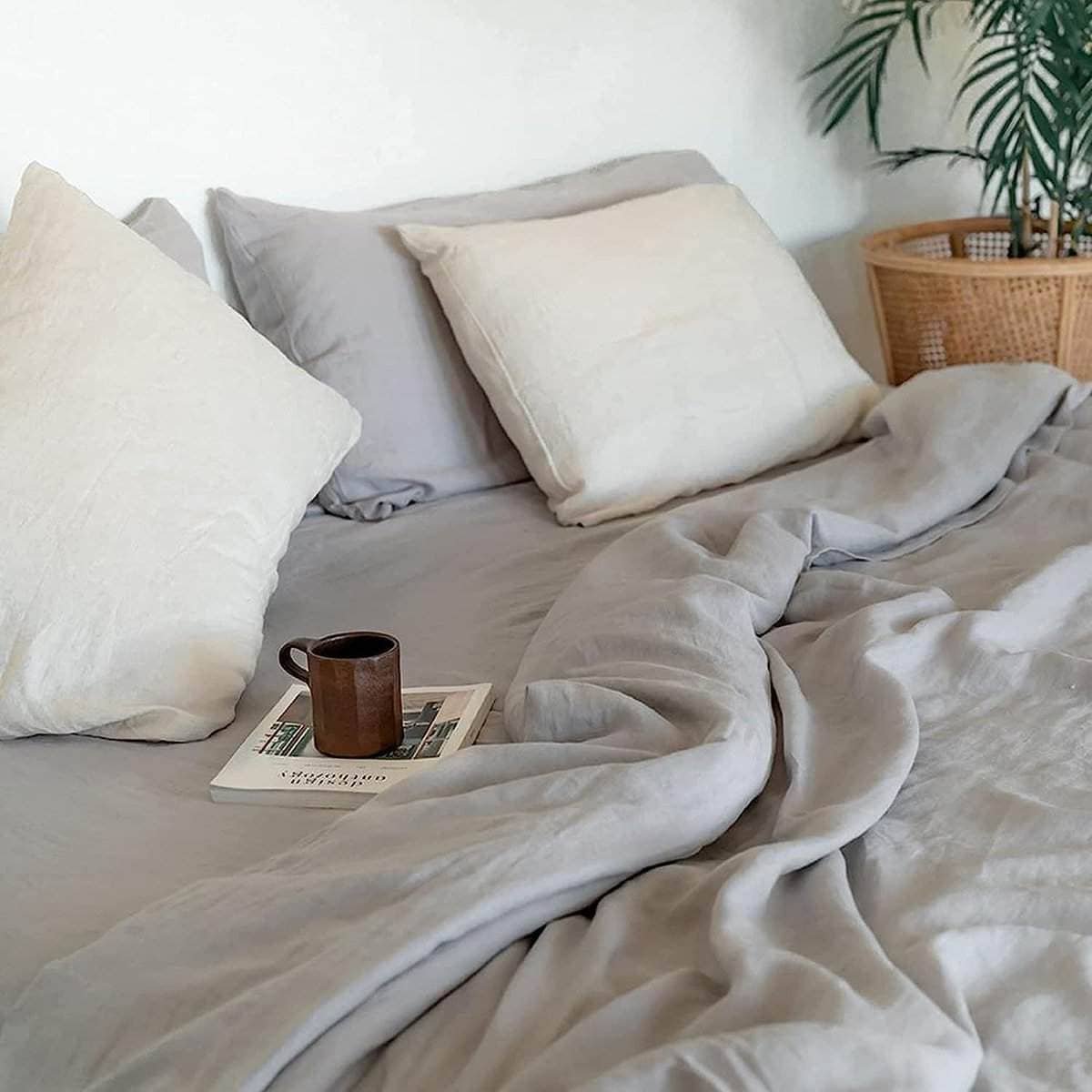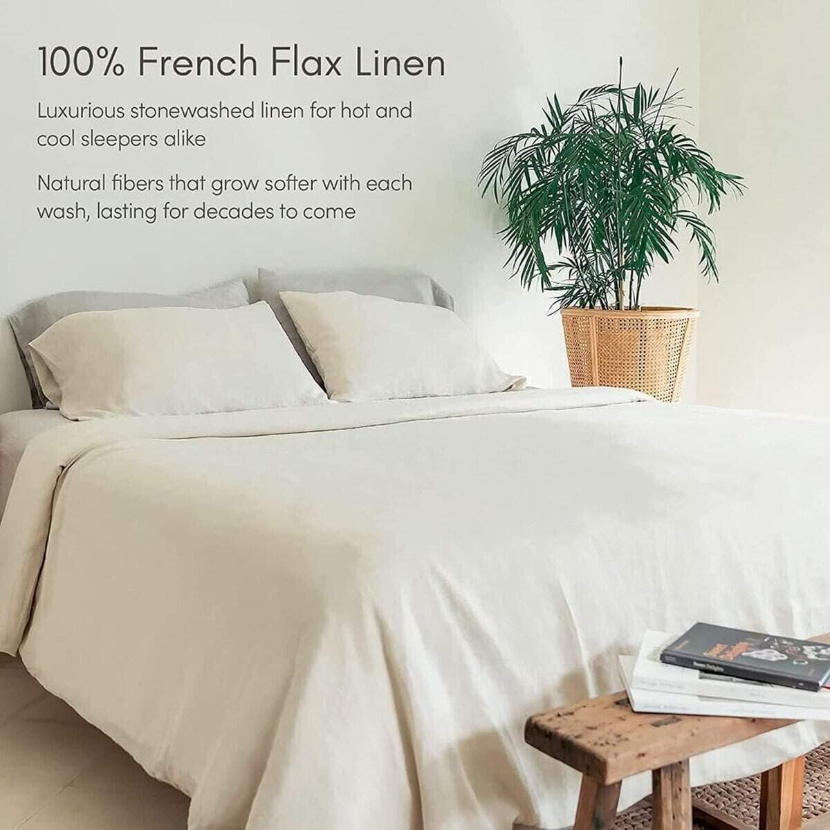 Sábana Ajustable 100% Lino Francés Baloo (Gris Paloma –