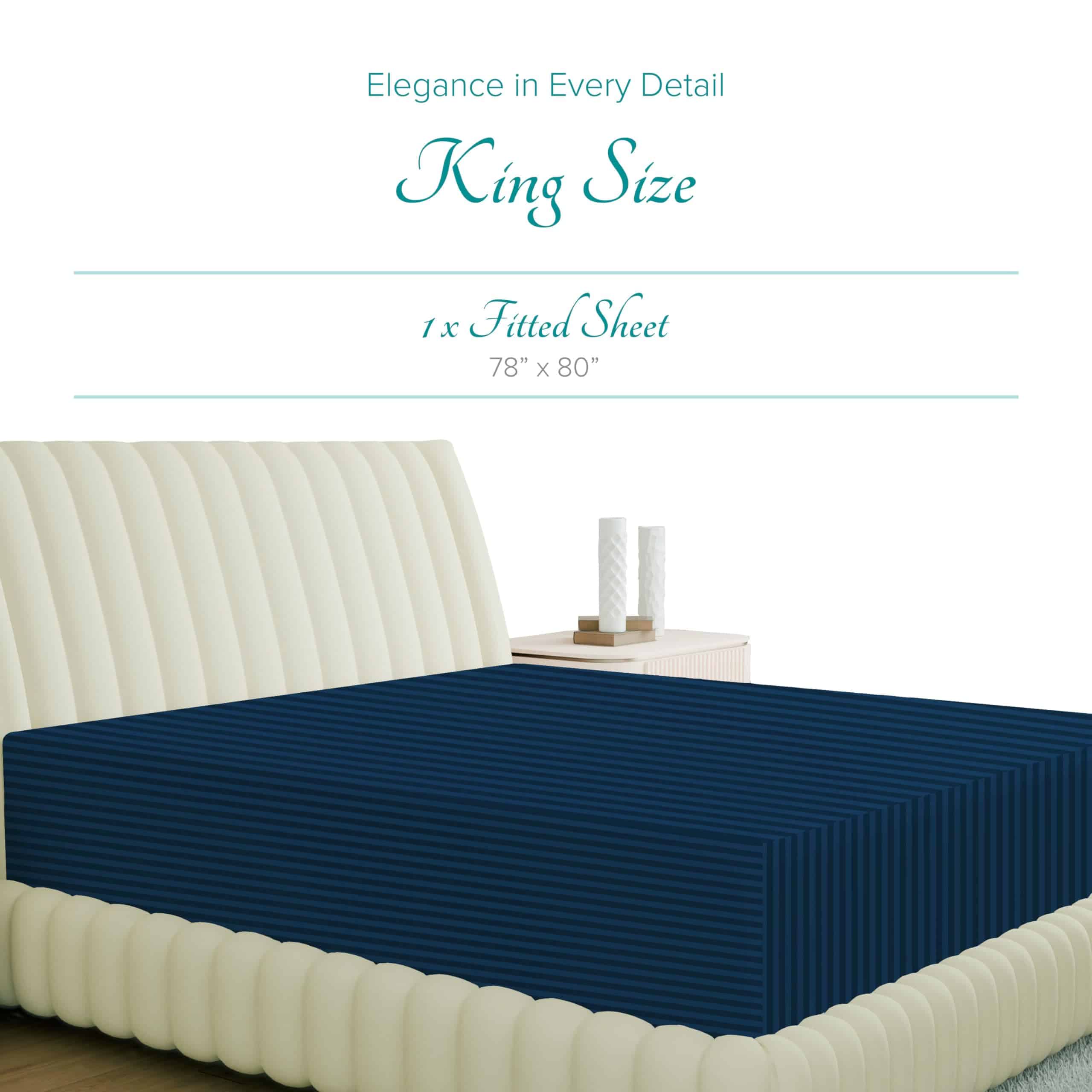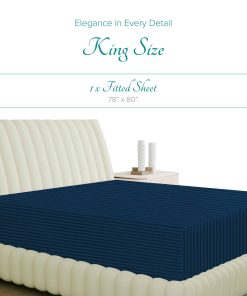 Sábana Ajustable a Rayas Azul Marino Carressa Linen 100%