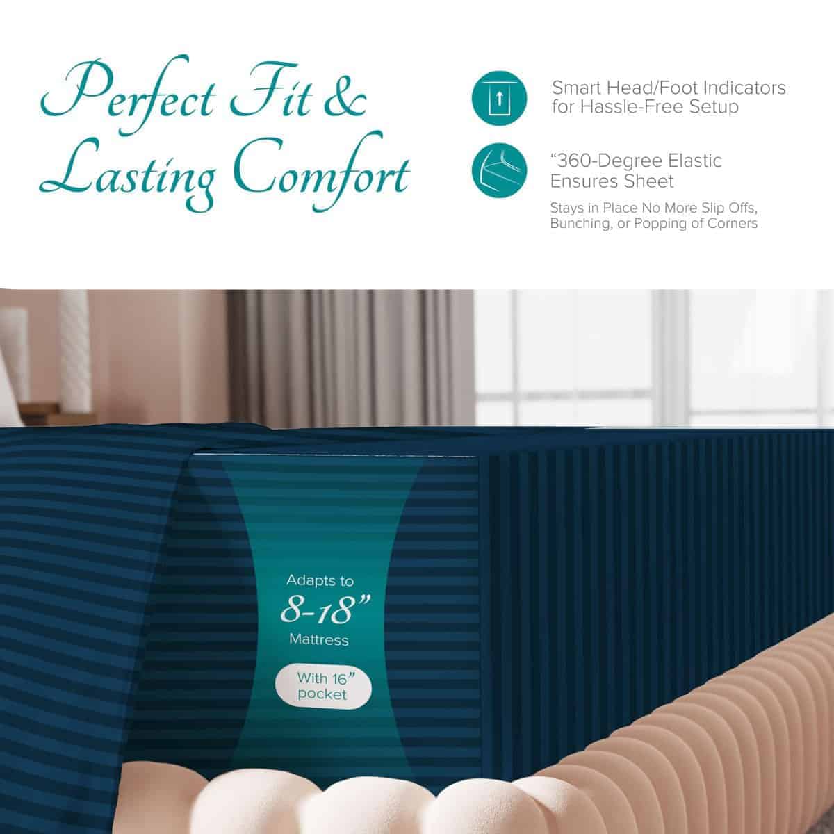 Sábana Ajustable a Rayas Carressa Linen 100% Algodón