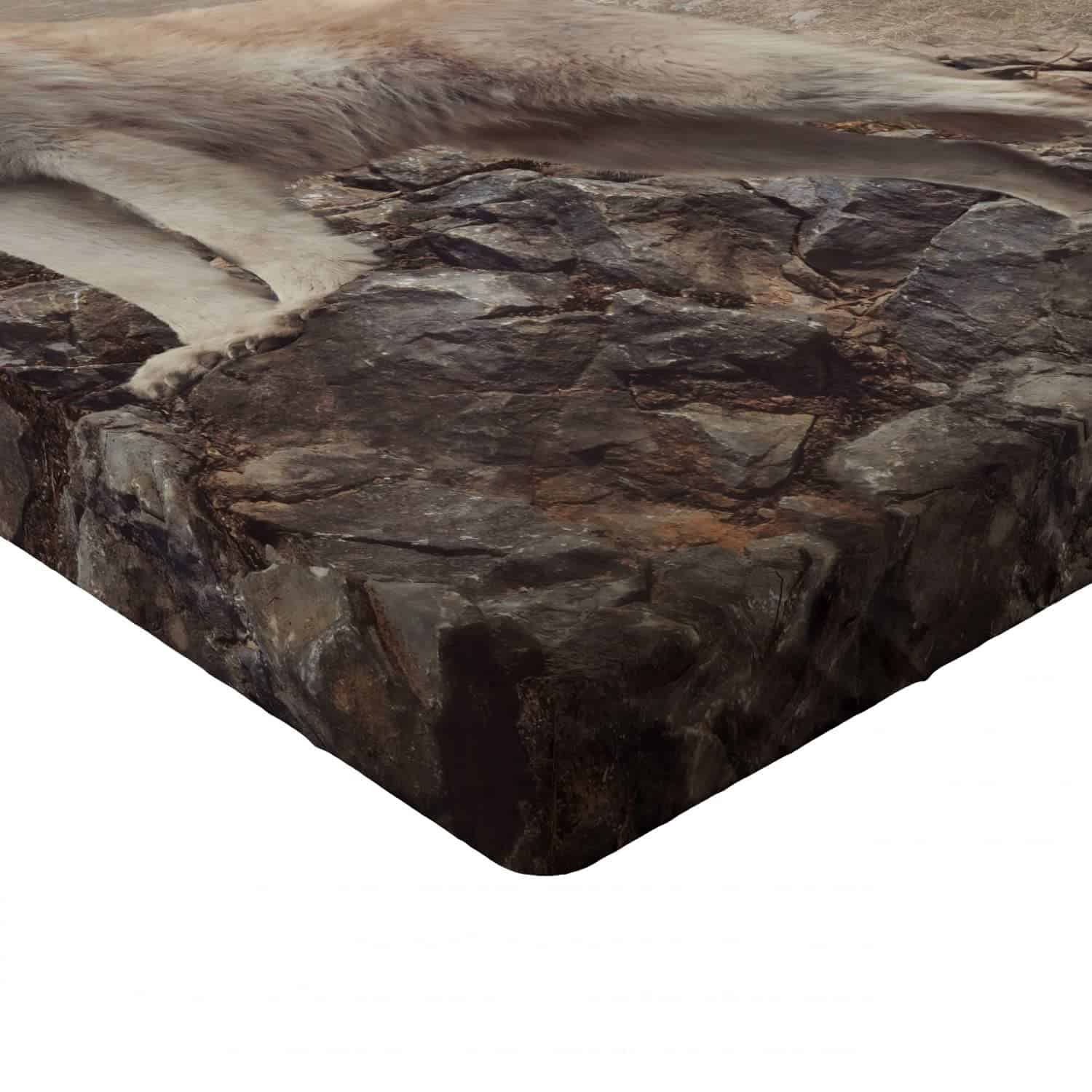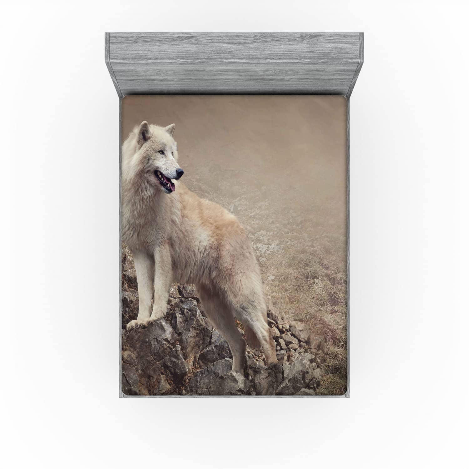 Sábana Ajustable Ambesonne Animal, Lobo Blanco en Rocas en