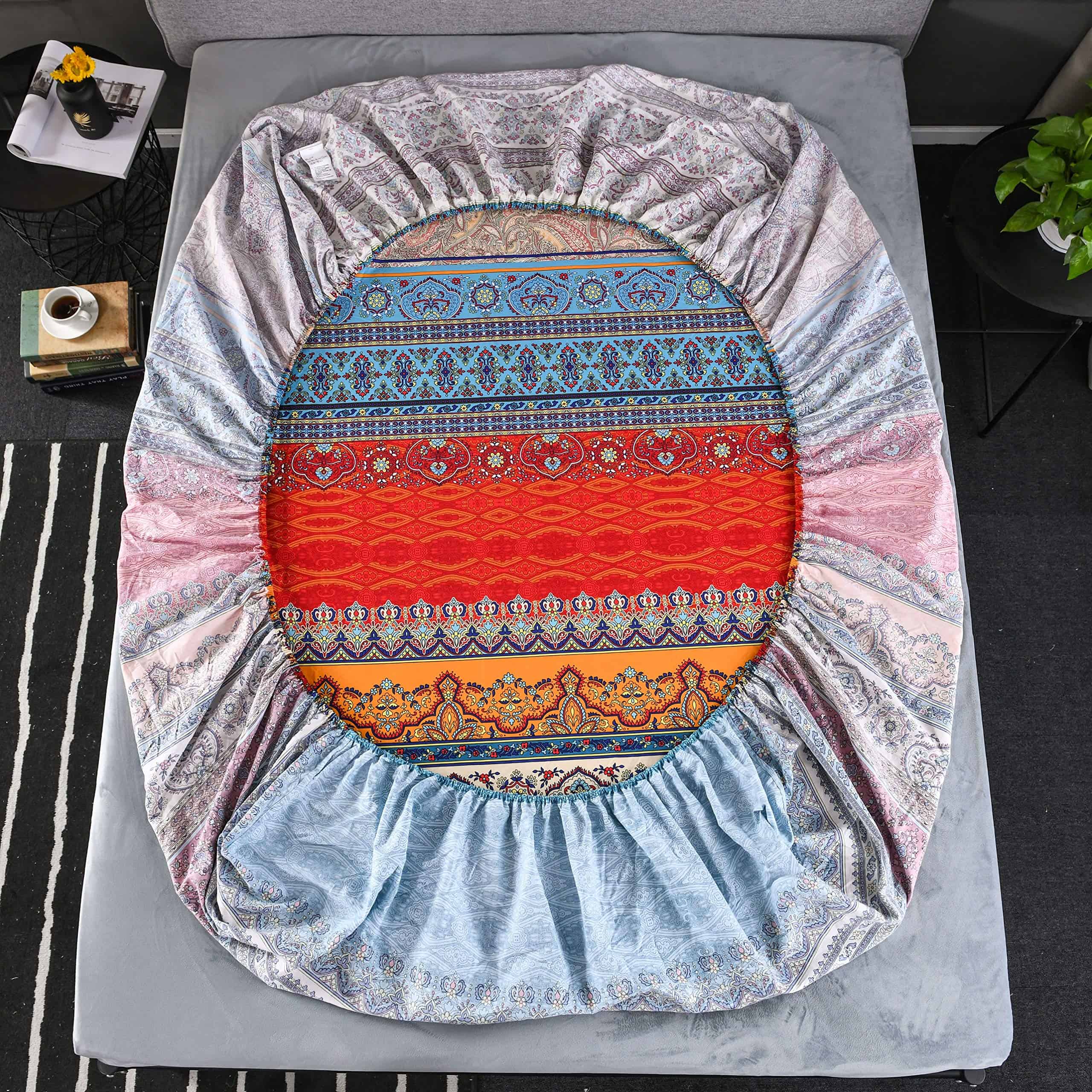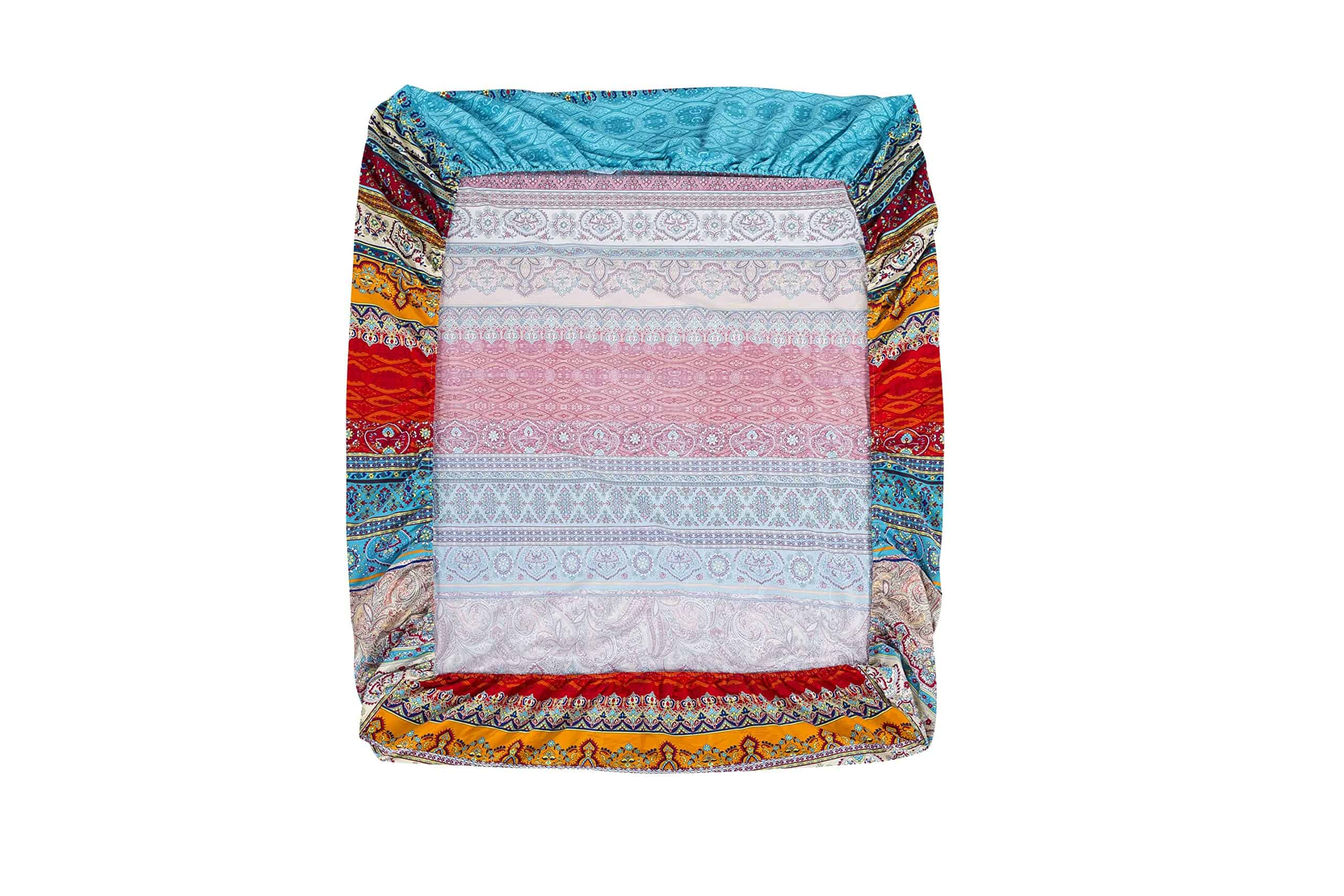 Sábana Ajustable Bohemia Exótica de Rayas, Sábana de Cama
