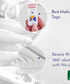 Nuestras sábanas ajustables de algodón sateen son altamente transpirables, permitiendo que el aire circule y manteniéndote fresco y cómodo toda la noche. Perfecto para cualquier temporada. Se puede lavar y secar a máquina en un ciclo normal, y saldrá luciendo genial durante años. Nuestra sábana ajustable de algodón blanco es duradera, apenas se arruga, y no se apellida, decolora o encoge. Perfecta para usar sola o con una sábana encimera o cobertura de edredón, haciéndola una elección ideal para cualquier dormitorio. Comprometidos a hacer nuestra parte, en 2022 y 2023 donamos más de 22,000 piezas de ropa de cama a organizaciones benéficas locales en los Estados Unidos. No utilizamos plástico en nuestro empaque, y nuestras sábanas se producen en nuestra fábrica de propiedad familiar en India. Cada pieza se inspecciona para calidad, y prometemos reemplazar cualquier producto defectuoso sin costo alguno para ti. Compra con confianza con nuestra política de devolución de 30 días, incluso si has lavado o usado nuestro producto.