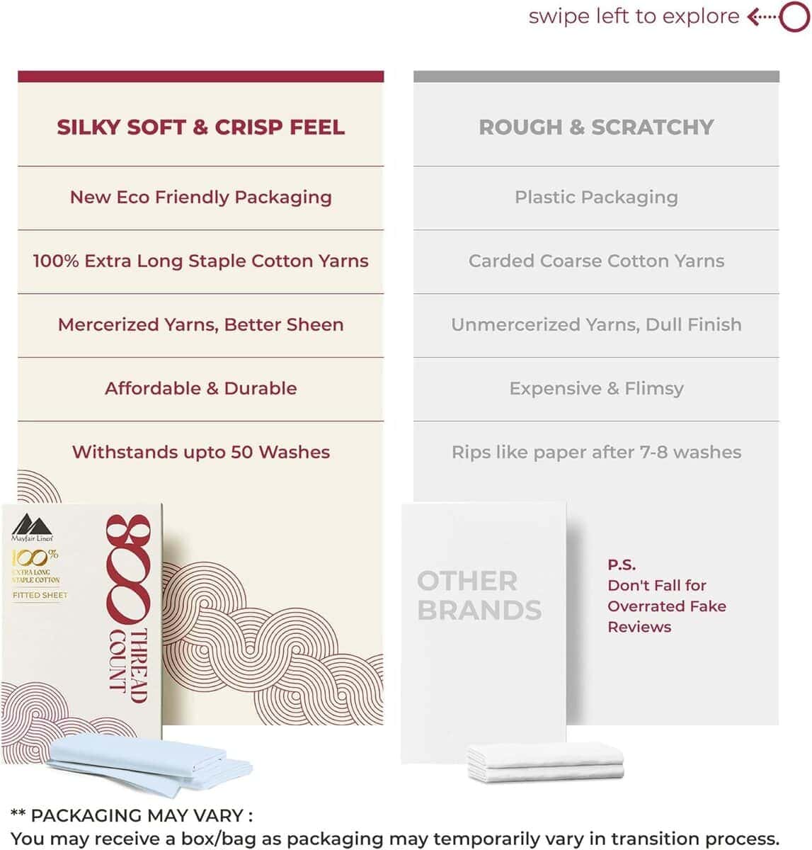 QUÉ HAY EN LA BOLSA 1 sábana ajustable – 72 W x 84 L + bolsillo profundo de 16 pulgadas PRIMERO LO PRIMERO, ¿ESTAS SÁBANAS AJUSTABLES SE MANTENDRÁN EN SU LUGAR Nosotros las hemos entrenado muy bien, señor. Las hemos diseñado con bolsillos extras de 16 pulgadas para que sea más fácil meterlas y sacarlas. Se adaptan a todos los colchones, de espuma baja, híbridos, de espuma nueva y de doble capa, y el borde elasticado asegura la sábana al colchón. Sin desmontajes o deslizamientos cuando tu perro salta a la cama o cuando tú lo haces. Ah, y además, estas sábanas tienen etiquetas inteligentes para indicarte los lados de longitud y anchura para hacer la cama fácilmente. ¿QUÉ HACE QUE NUESTRAS SÁBANAS AJUSTABLES SEAN MEJORES Hay una razón simple. Utilizamos algodón extra largo mientras que otros usan algodón corto o regular para hacer sus sábanas. Al mismo tiempo, nos enfocamos en la calidad de hilos, tejidos y procesos de acabado (como la mercerización) para que nuestro producto destaque. La longitud extra larga del algodón produce juegos de sábanas más duraderos y suaves en comparación con otras variedades de algodón. Son de la más alta calidad, más lujosos, frescos, transpirables y, en última instancia, respetuosos con la piel. Es mejor que la ropa de cama de hotel. Sin bromas. ¿CUÁNTO DURARÁN ESTAS SÁBANAS AJUSTABLES Si las cuidas correctamente, estas sábanas pueden durar años. Las sábanas están mercerizadas, lo que significa que son más resistentes a las pastillas, la decoloración y el encogimiento. Lava nuestras sábanas de algodón 100% en un ciclo suave en la lavadora. Seca al aire o en la secadora, y dobla las sábanas después de retirarlas de la secadora para evitar arrugas. POR QUÉ ELEGIR MAYFAIR LINEN Crecemos nuestro algodón de forma natural sin utilizar químicos ni OGM. No nos creas, verifica nuestra certificación STANDARD 100 de OEKO-TEX que garantiza que tus sábanas están libres de químicos textiles y tintes dañinos. Para hacer de este un planeta de cama para todos, utilizamos un embalaje sin plástico y minimizamos nuestra huella de carbono.