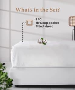 Este hermoso sábana ajustable California King está fabricado con 100% algodón egipcio y cuenta con una transpirabilidad inigualable. Disfruta de la suavidad de estas sábanas cal king de 800 hilos de bolsillo profundo que rivalizan con las sábanas de hotel. ¡Elección perfecta para aquellos que prefieren sábanas de satén! Nuestras sábanas cal king de bolsillo profundo miden (72″ W X 84″ L). La sábana ajustable Good Sleep Bedding está diseñada con una banda elástica resistente para adaptarse perfectamente al colchón California King con un grosor de hasta 16 pulgadas. Estas sábanas inferiores son la elección ideal para aquellos que desean que su sábana inferior se mantenga en su lugar toda la noche. Estas sábanas de estilo hotel están hechas de algodón egipcio de fibra larga con un tejido de satén. Nuestras sábanas ajustables de algodón de 800 hilos resisten los lavados repetidos y te brindan una experiencia cómoda durante mucho tiempo. Recomendamos lavar estas sábanas en un ciclo de lavado suave. Haz que hacer la cama sea fácil con nuestra sábana ajustable de un solo ajuste de 800 hilos, que cuenta con prácticas etiquetas indicadoras de la cabecera y los pies. ¡Esta sábana ajustable de algodón se mantiene en su lugar para que tengas una preocupación menos! Combina esta sábana ajustable california king con fundas de almohada a juego y una manta de gofre de nuestra colección para darle a tu habitación un cambio estético. Si buscas sábanas suaves como la seda para tu habitación o dormitorio de invitados, has llegado al lugar correcto. Nuestra sábana ajustable california king es naturalmente fresca y cómoda. ¡Además, son duraderas y fáciles de mantener! ¡Esta sábana ajustable refrigerante debe ser parte de tu lista de esenciales para apartamentos!