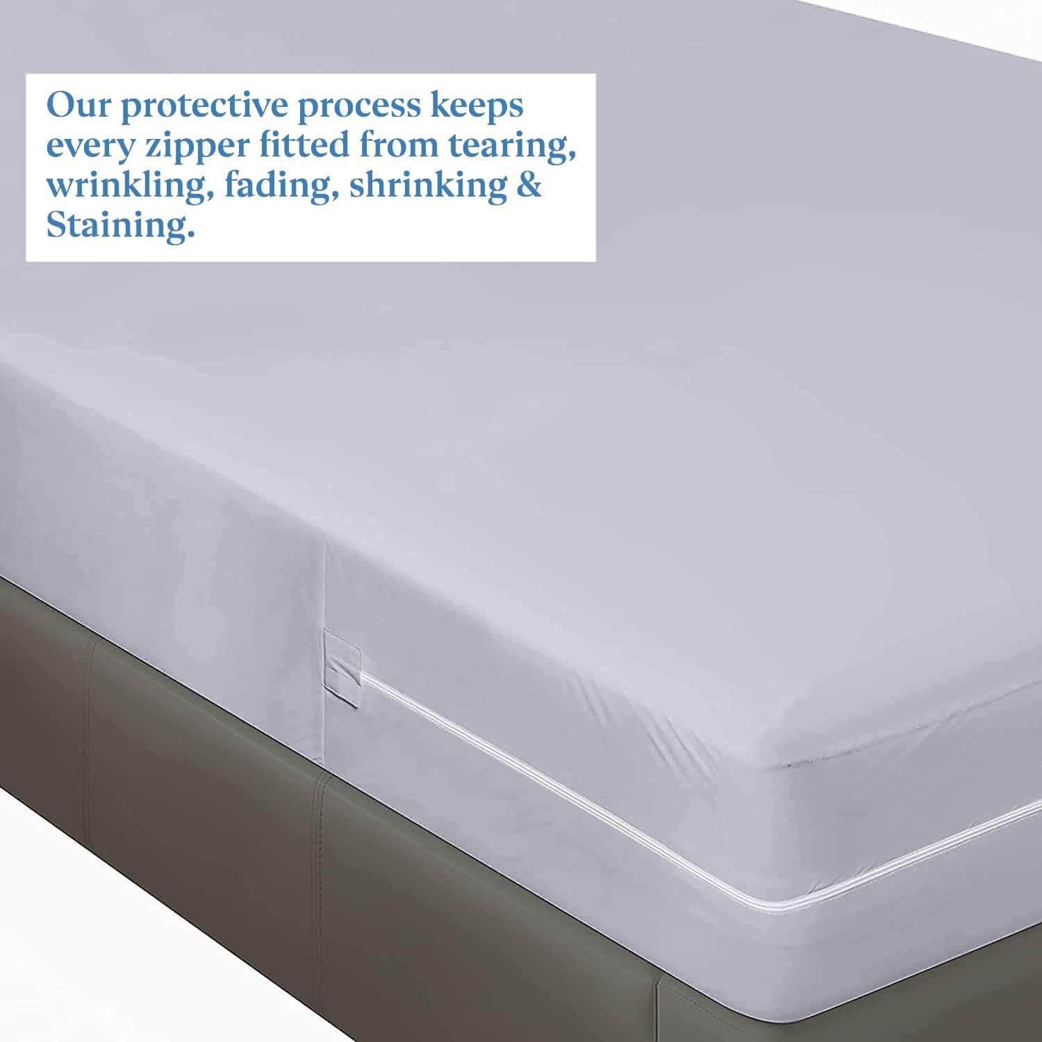 Una sábana ajustable con cierre está hecha de tela de mezcla de algodón de alta calidad y tiene un cierre de cremallera. Se sabe que es suave, transpirable y duradera. Estas sábanas también son relativamente económicas, lo que las convierte en una opción popular para muchos consumidores. El cierre de cremallera en una sábana ajustable con cierre de algodón hace que sea fácil de poner y quitar en la cama. También ayuda a mantener la sábana en su lugar, incluso si te mueves mucho mientras duermes. Las sábanas ajustables con cierre están disponibles en una variedad de tamaños y colores, para que puedas encontrar una que sea perfecta para tu cama y la decoración de tu habitación.