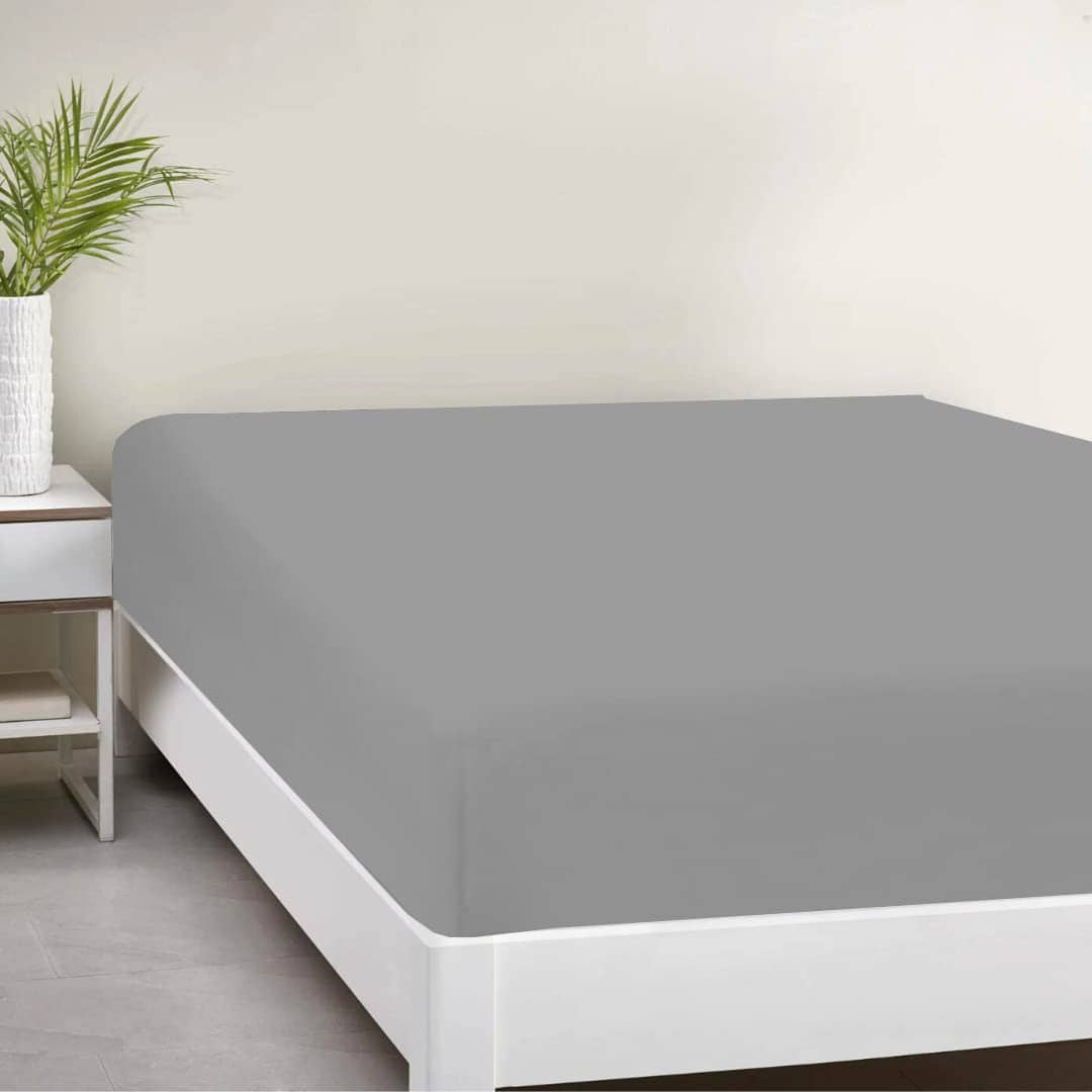 Sábana Ajustable de Algodón 100% de 400 -Gris Oscuro Sólido