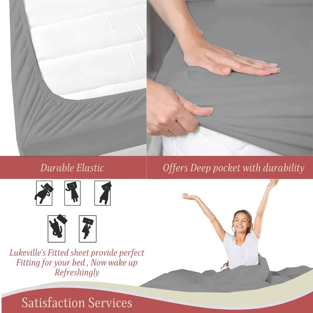 3. Tamaño Queen: 1 Sábana Ajustable Completamente Elástica 60″ x 80″ + 15″ bolsillo profundo acabado para adaptarse a colchones de hasta 15″ de profundidad. Elástica alrededor del colchón.