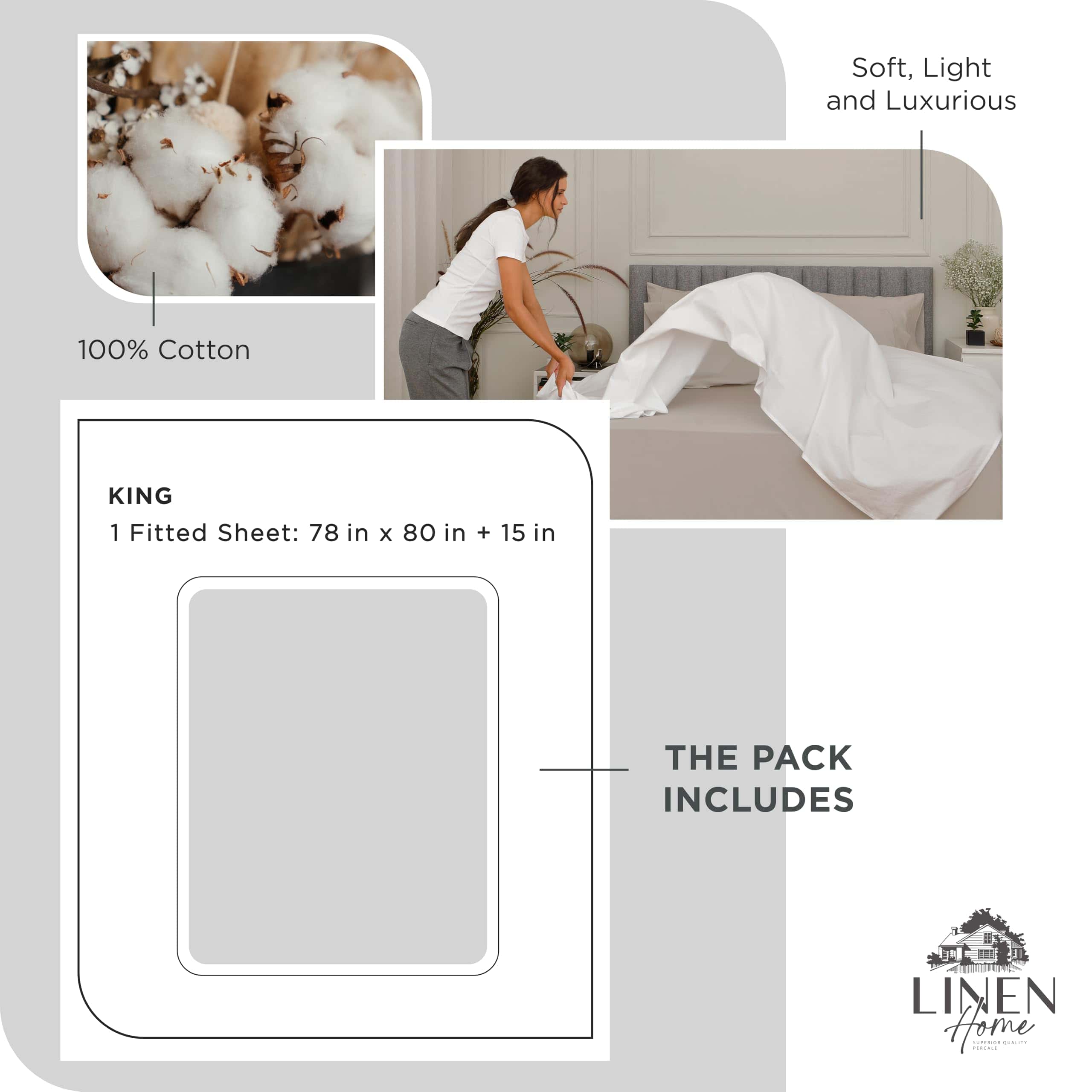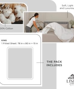 Sábana ajustable de algodón 100% percal, tamaño King, color