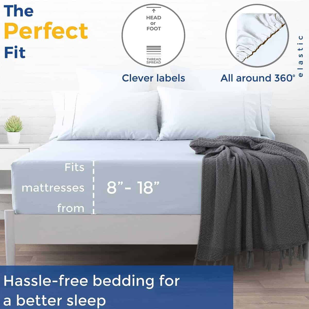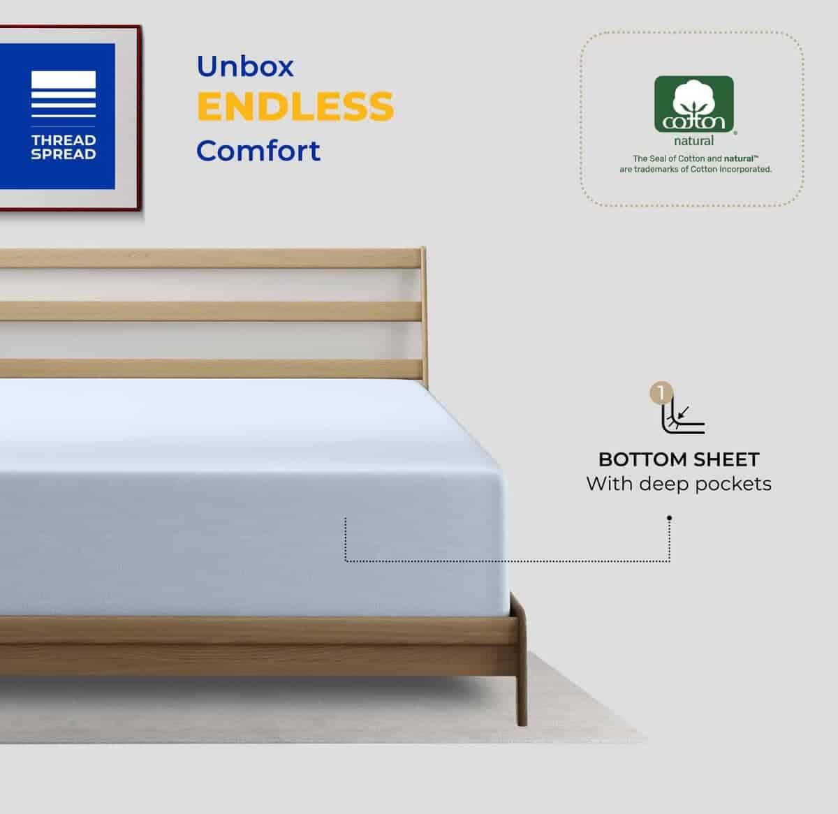 Sábana Ajustable de Algodón 100% Queen – 600 -Azul Claro
