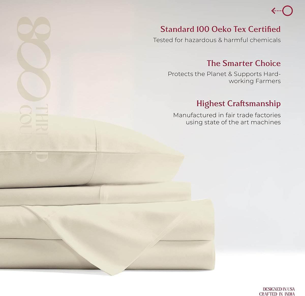 4. Procesos ecológicos y certificados OEKO-TEX: Nuestra sábana ajustable de cama de alta calidad y mejor valorada está certificada por OEKO-TEX, lo que significa que tu ropa de cama está libre de sustancias nocivas y es ideal para niños y adultos con piel sensible. Desde la obtención hasta la fabricación, seguimos estrictos procesos ecológicos, lo que hace que nuestra sábana ajustable de algodón sea una mejor alternativa a la microfibra y otras sábanas ajustables.