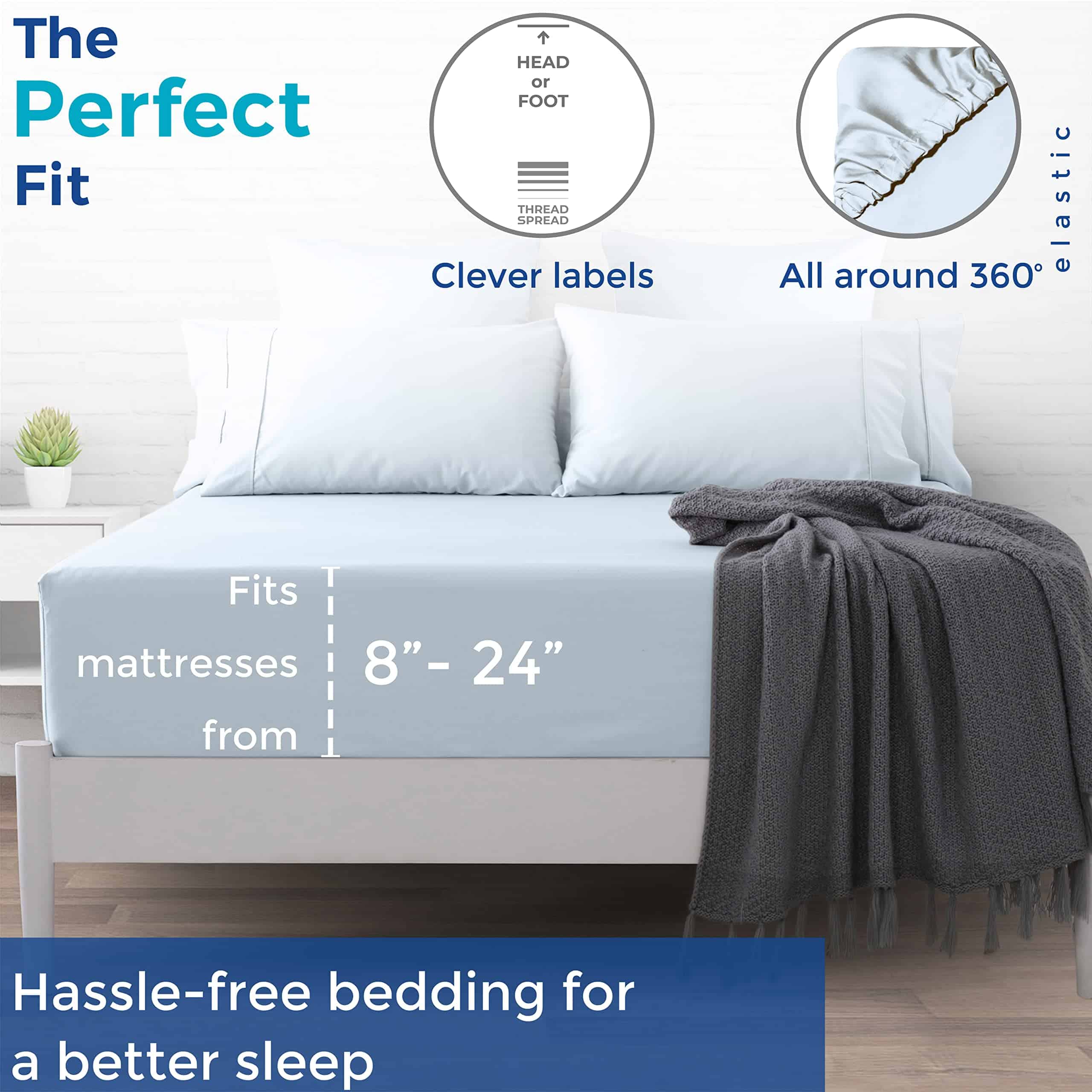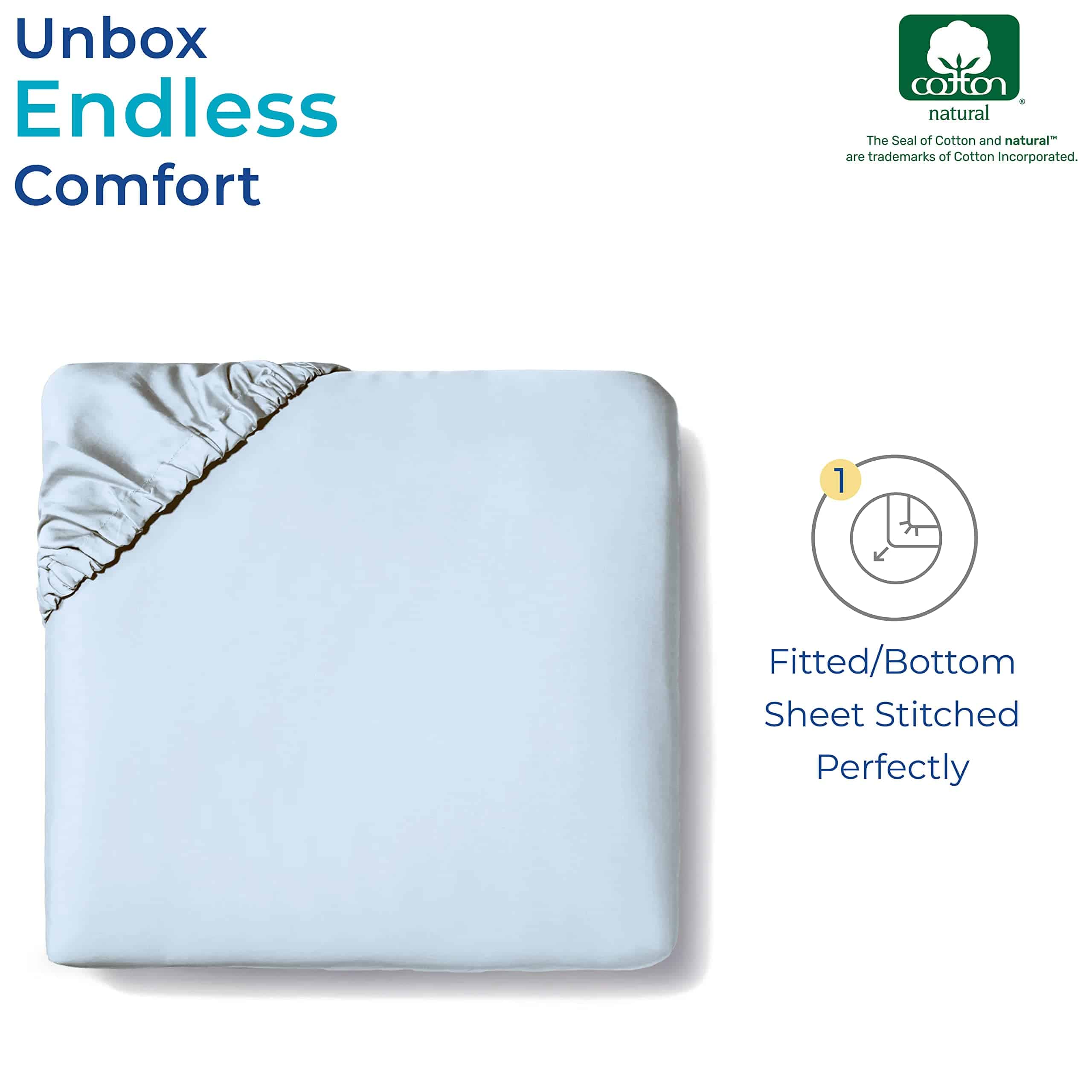 Sábana Ajustable de Algodón Egipcio de Lujo -Azul Claro