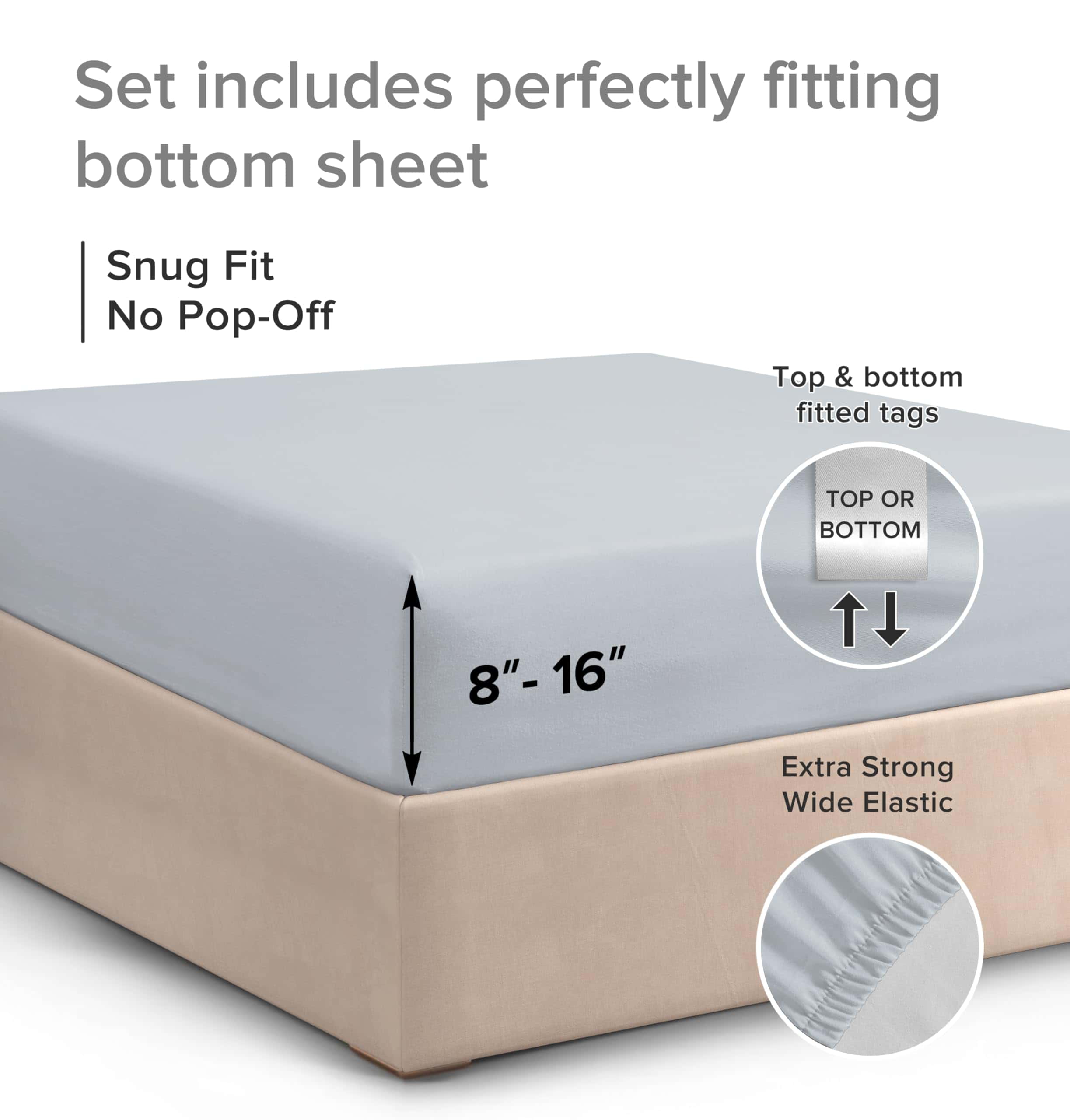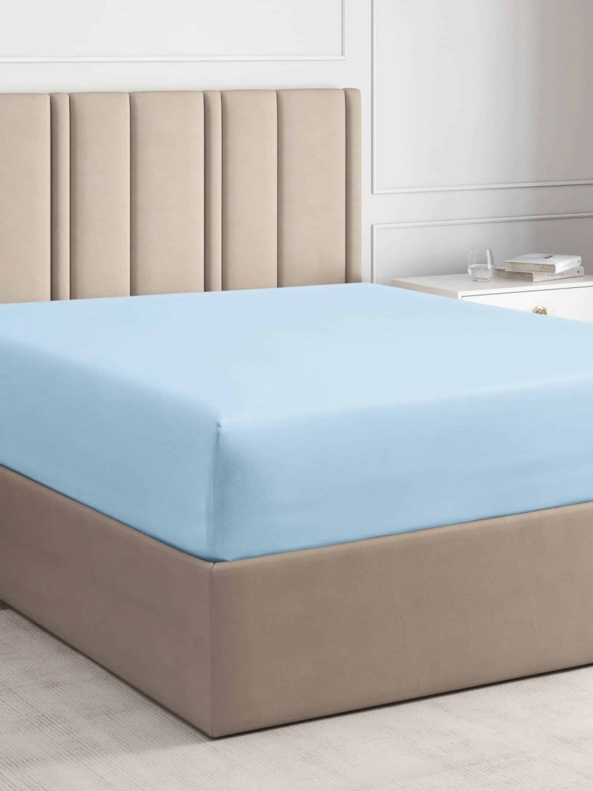 Sábana Ajustable de Algodón Egipcio Queen -Azul Claro