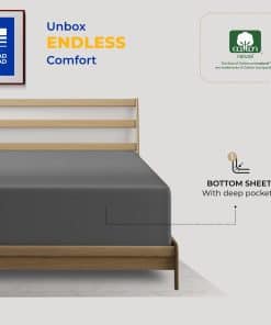 Nuestra sábana ajustable California king se adapta como un guante a cualquier tipo de colchón gracias a su elástico premium y bolsillos profundos que aseguran un ajuste perfecto sin deslizamientos ni desprendimientos durante la noche. La suavidad y comodidad de nuestras sábanas de 100% algodón de fibra larga cultivado en la India te transportarán a un mundo de tranquilidad y descanso.