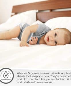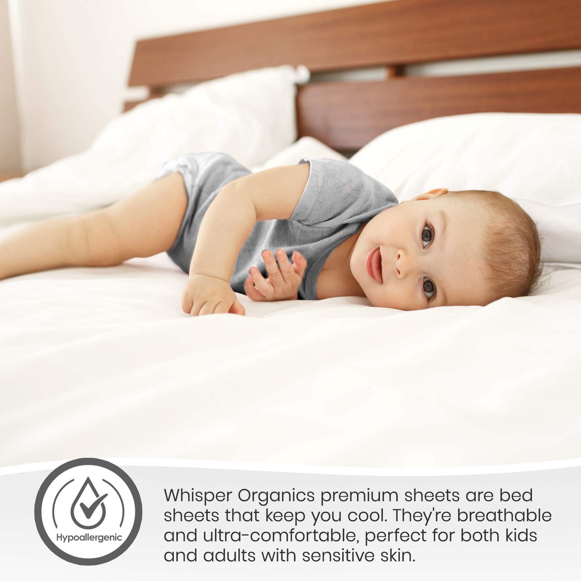 1. ALGODÓN ORGÁNICO CERTIFICADO – Nuestra sábana de 100% algodón orgánico cuenta con la certificación completa GOTS (Global Organic Textile Standard). Una sábana de calidad premium que es buena para toda tu familia. 2. SÁBANA LUJOSAMENTE SUAVE – Sueña agradables sueños en esta sábana increíblemente suave de Whisper Organics. Sus 300 hilos de algodón puro en tejido satén le dan una sensación sedosa y suave, ideal para dormir. 3. NATURAL Y AMIGABLE – Esta sábana de cama ajustable de calidad superior está hecha de material natural. Acúrrucate durante todo el año con esta sábana transpirable y ultra cómoda, perfecta tanto para niños como para adultos con piel sensible. 4. AJUSTE PERFECTO PARA CAMA TAMAÑO CALIFORNIA KING – Incluye una sábana ajustable de 183cm x 213 cm, se ajusta hasta un colchón de 38 cm de grosor. Se suaviza perfectamente sobre tu cama con sus esquinas elásticas. Experimenta tu mejor sueño en esta ropa de cama de calidad de hotel de lujo.