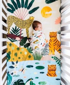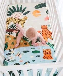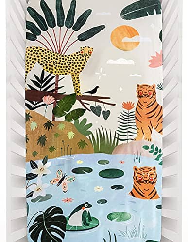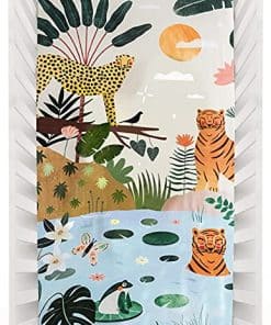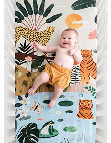 1. SUAVE Y TRANSPIRABLE: Hecha de sateen de algodón 100% suave con un recuento de 230 hilos, esta sábana ajustable se sentirá suave y suave junto a la piel de su bebé. Diseñada para adaptarse a colchones de cuna estándar de EE. UU. (28″ de ancho x 52″ de largo x 8″ de profundidad).