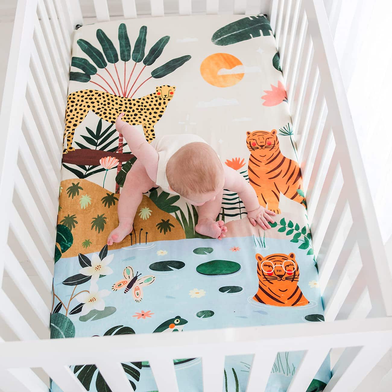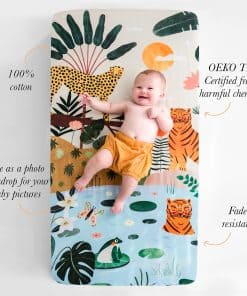 4. CREA LA ESCENA PERFECTA: Perfecta para cualquier nuevo padre que no puede esperar para fotografiar a su pequeño, esta sábana de cuna unisex añade un fondo caprichoso a su foto.
