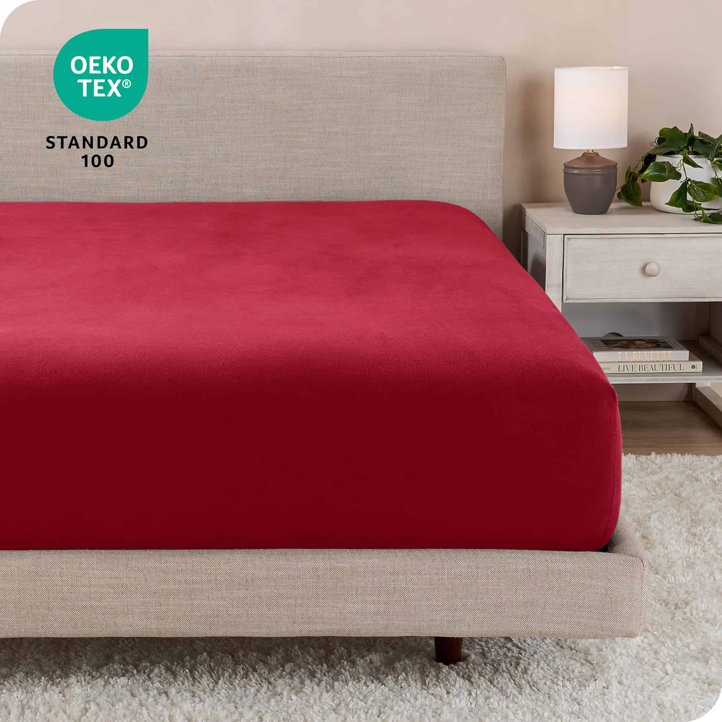 Sábana Ajustable de Franela Bare Home 100% -Rojo