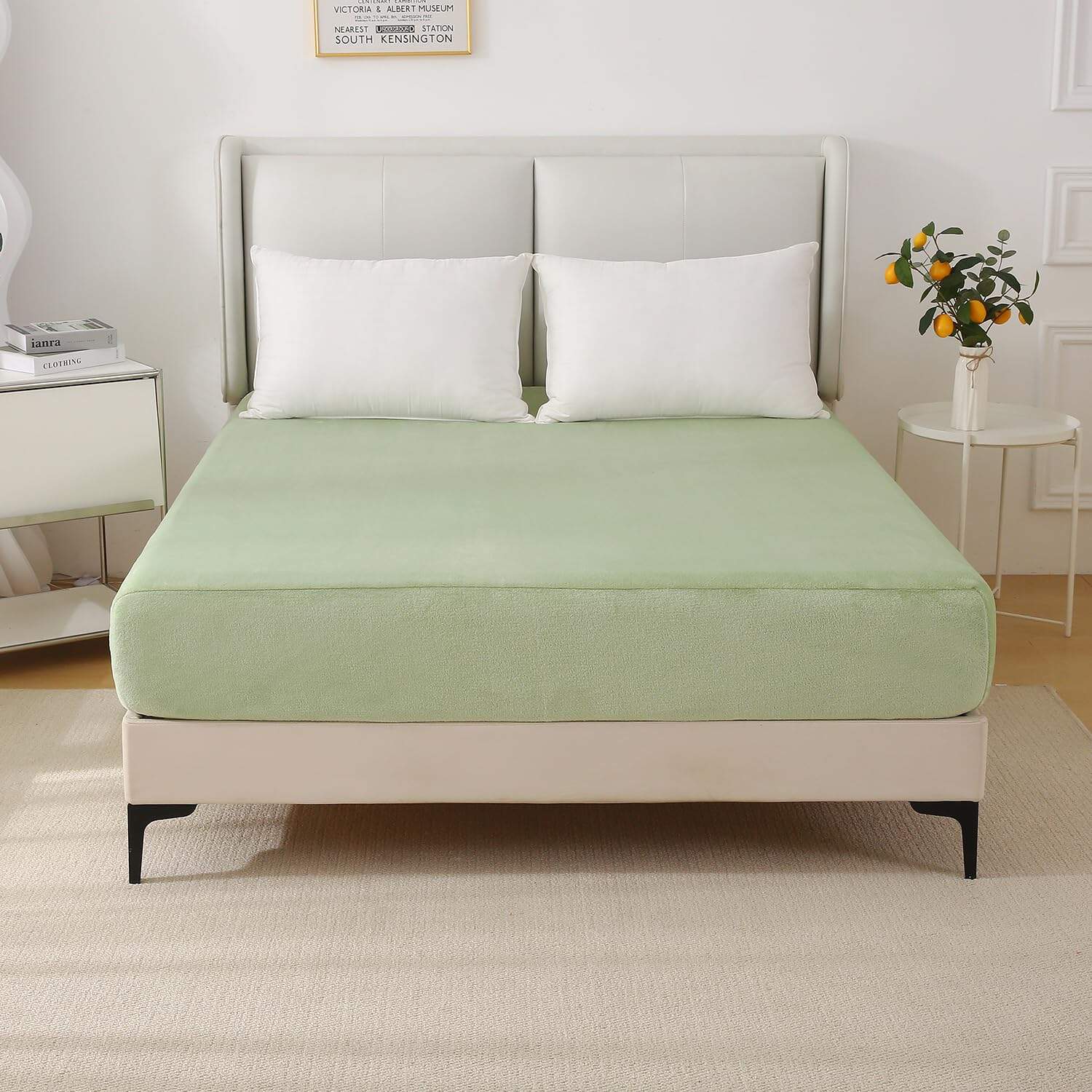 Sábana de ajuste perfecta para su colchón queen. Diseño clásico de la cubierta del colchón que agrega una capa adicional de estilo y frescura a su habitación y combina con elementos decorativos modernos, naturalistas u otros. Muy suave al tacto y lo mantendrá cálido y cómodo en la temporada de frío. Resistente a la decoloración, manchas, encogimiento y arrugas. Se puede lavar a máquina en frío en ciclo suave/delicado, secar en secadora a baja temperatura. No usar lejía. Planchar a baja temperatura si es necesario.