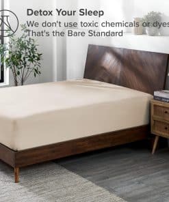 Sábana Ajustable de Jersey de Algodón 100% Orgánico Bare Home – Tamaño Completo – Ultra Suave – Sábana Ajustada de Bolsillo Profundo – 100% Algodón – Hilados de Peinado (Completo, Arena)