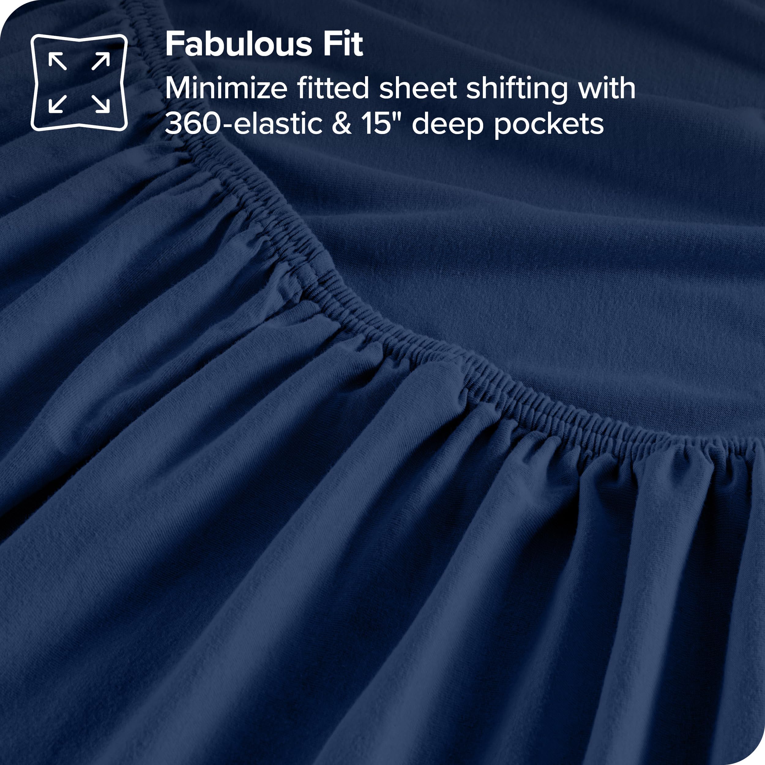 Sábana Ajustable de Jersey de Algodón -Azul Oscuro