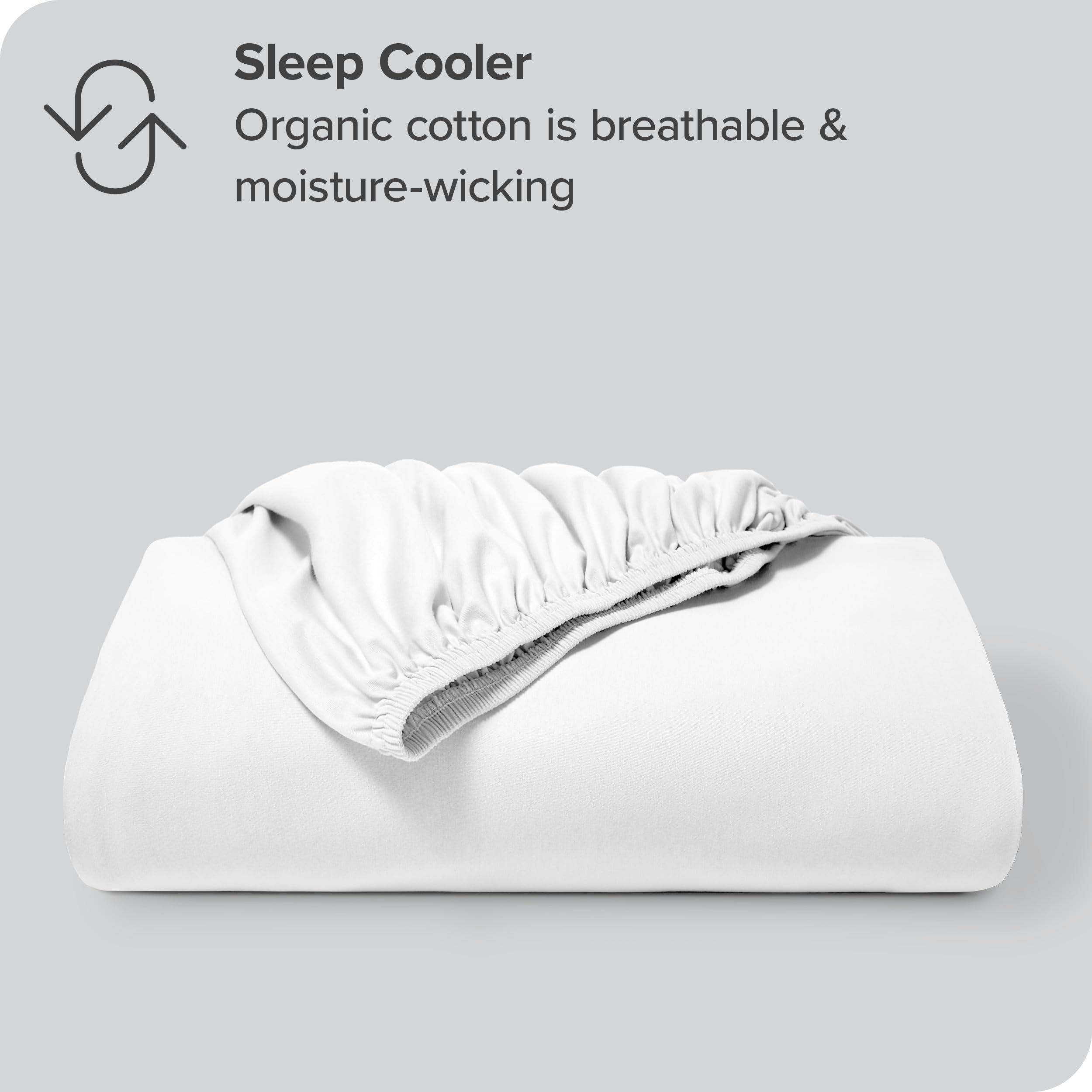 Bare Home 100% Organic Cotton Jersey Fitted Sheet – King Size – Ultra Soft – Deep Pocket Fitted Sheet – 100% Cotton – Ring Spun Yarns (King, White)