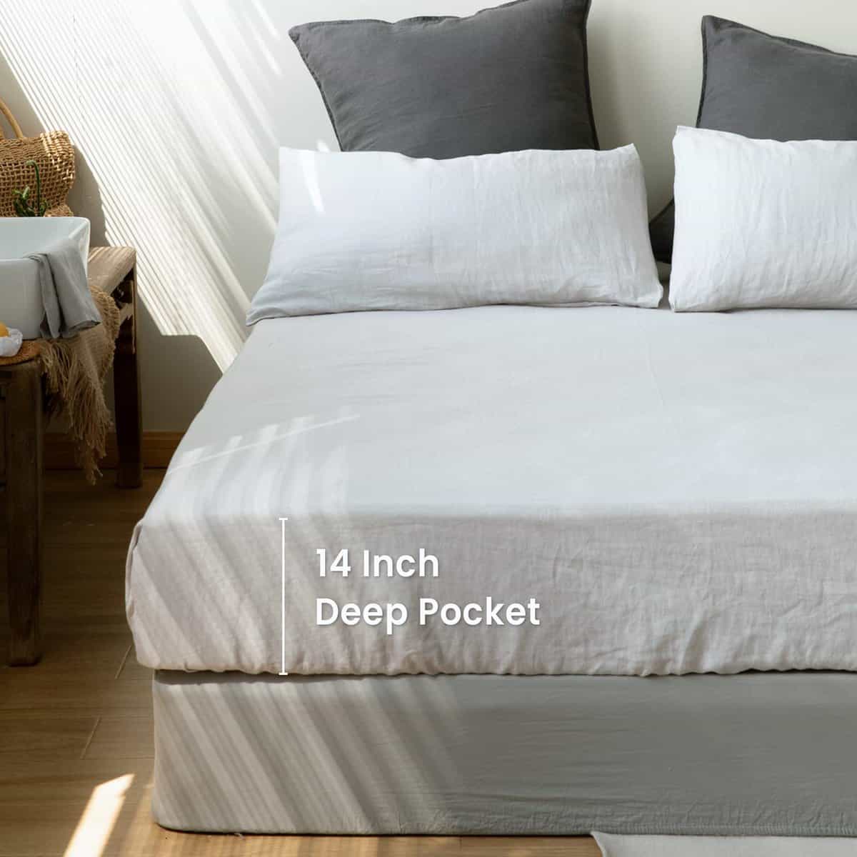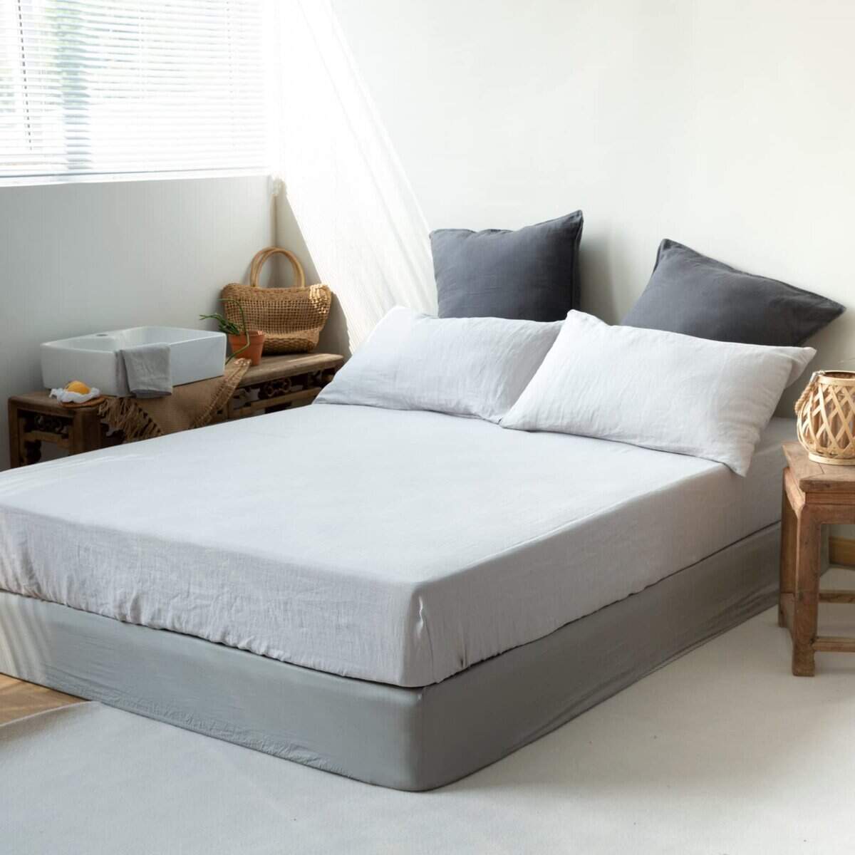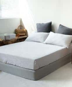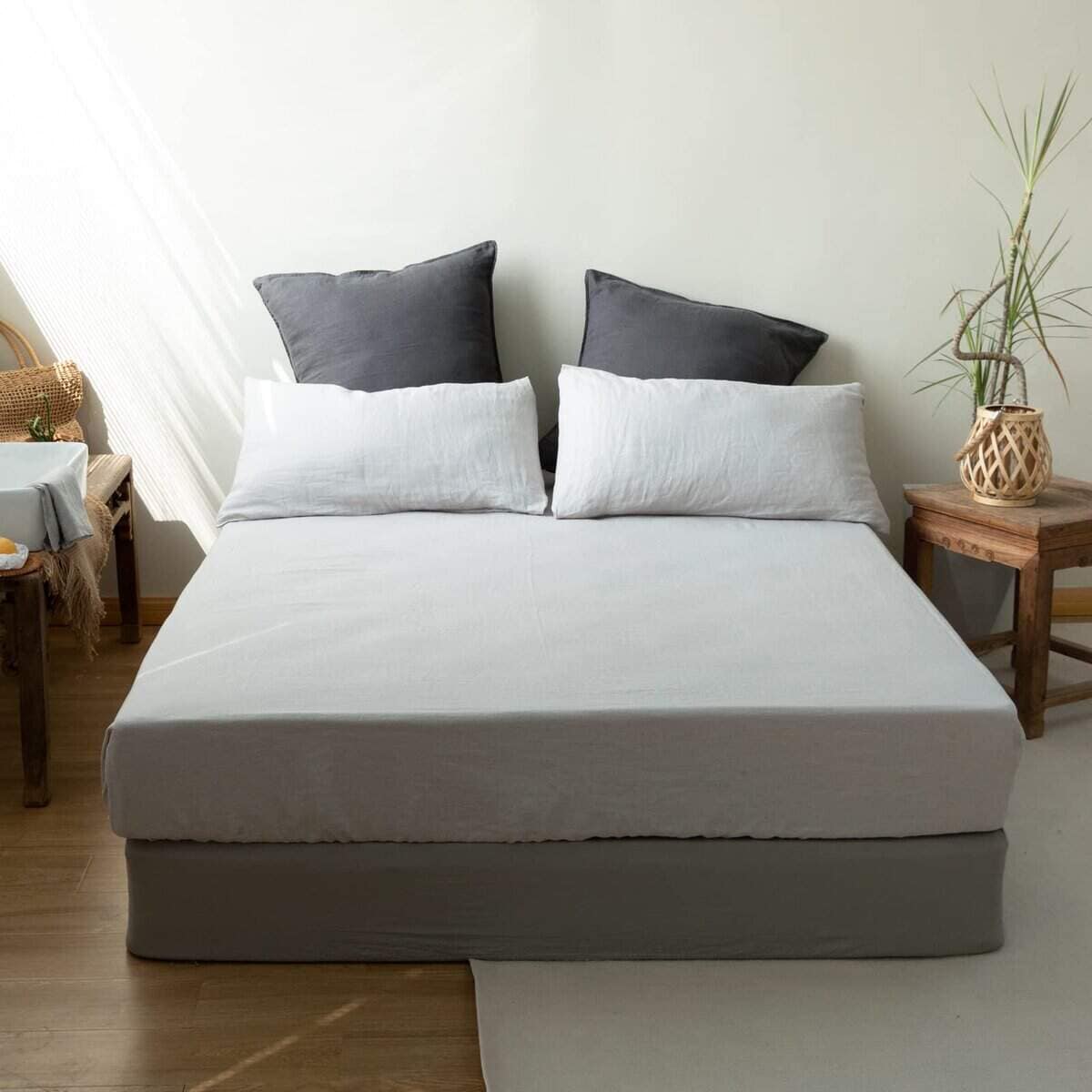 Sábana Ajustable de Lino 100% Lavado a la -Gris