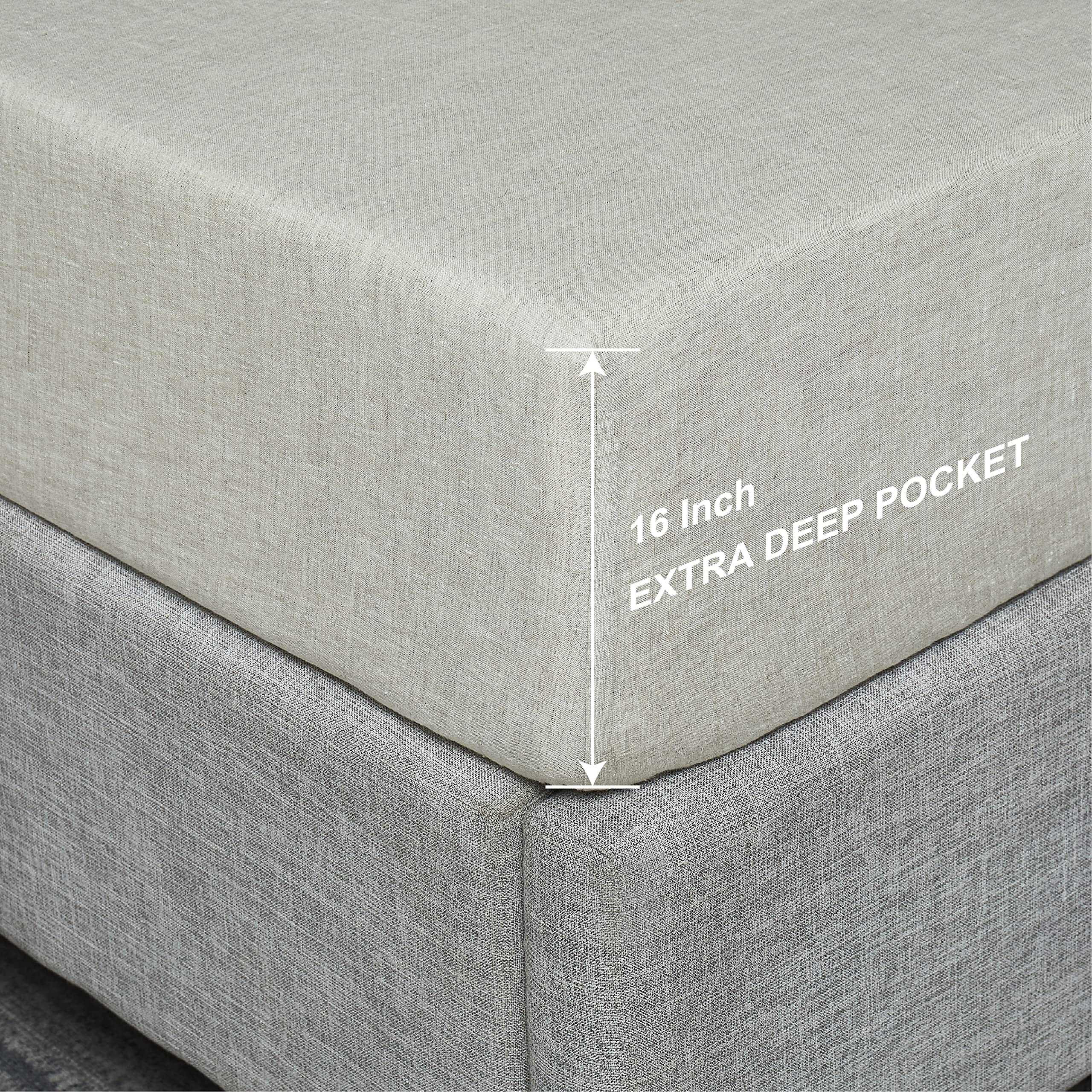 2. El lino de peso medio (180GSM) ofrece confort durante todo el año- fresco en verano y cálido en invierno. La experiencia excepcional se debe a su gran transpirabilidad. El lino absorbe el calor y la humedad muy bien y su capacidad de secado es excelente. Por lo tanto, esta sábana ajustable de lino flexible y transpirable es una excelente opción para la sudoración nocturna.
