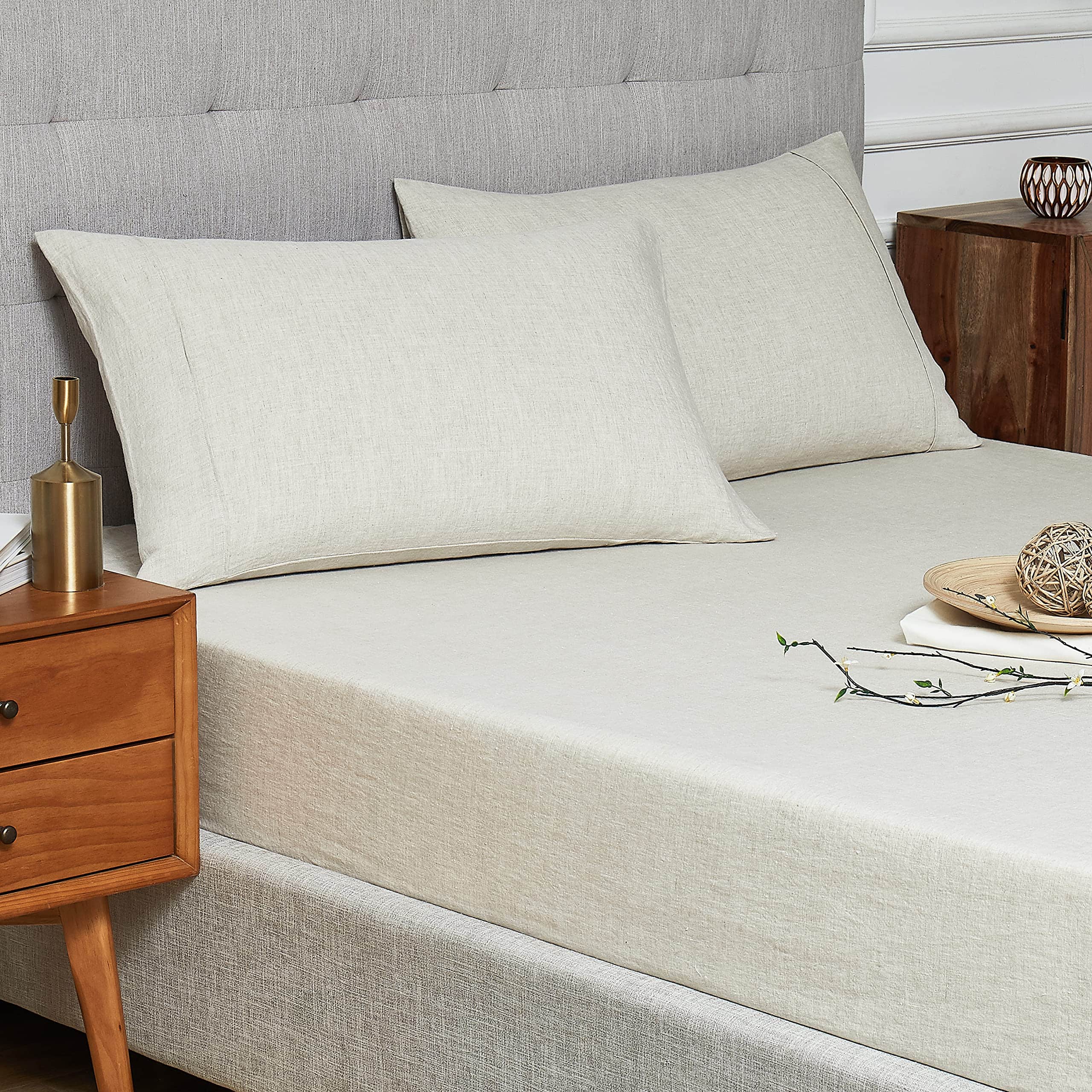 4. El lino natural brinda un aspecto sofisticado pero relajado. Esta sábana ajustable de lino sutilmente texturizada es una adición elegante a su cama y combina bien con una variedad de esquemas de decoración diferentes. Certificado Standard 100 por OEKO-TEX. Nuestras sábanas de lino están certificadas MADE IN GREEN y STANDARD 100 por OEKO TEX.