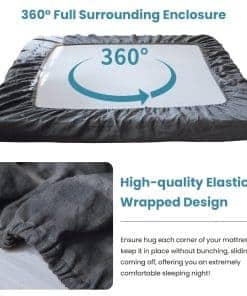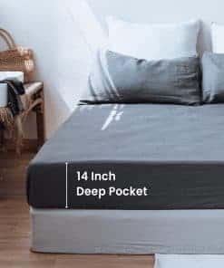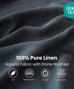 1. TAMAÑO REINA 1 x Sábana Ajustable: 60»x 80»x14». Aplicado en una variedad de ocasiones y usos: Tu dulce hogar, habitación de invitados, regalo de aniversario / boda / acción de gracias / navidad / regalo para tus padres / hijos / parientes o tus amigos. 2. MATERIAL Hecho de Tela de Lino Francés de Alta Calidad 100% con Pre Lavado, 160 GSM (Para hacer que la tela sea suave, el proceso de prelavado causará un encogimiento incontrolable, por lo que el GSM final tendrá una desviación del 5% más o menos). Nuestros productos de lino han sido certificados de acuerdo con el ESTÁNDAR 100 de OEKO-TEX, lo que es respetuoso con el medio ambiente. La sábana ajustable de lino puede brindarte una vida más saludable y un sueño más cómodo, duradero por un largo período. 3. VENTAJA Sensación única de transpirabilidad, frescura en verano, sin preocupaciones por el sudor; También es una excelente elección para el invierno, maravillosamente cálido. La conductividad térmica y la absorción de humedad son mayores que la tela de algodón, tendrás un gran sueño. Buena solidez del color, no se desvanece fácilmente. Esta sábana ajustable de lino superará todas tus necesidades. 4. INSTRUCCIONES DE USO Lavado suave en ciclo delicado bajo 60 . No usar detergente que contenga blanqueador o blanqueador óptico. Secar a máquina con fuego medio. Planchar caliente si es necesario. No limpiar en seco. Lavar con colores similares. La tela de lino se vuelve más suave después de cada lavado. 5. 1 Pieza Sábana Ajustable Solo incluye 1 Sábana Ajustable de Bolsillo Profundo. La profundidad de la sábana ajustable es de aproximadamente 14 pulgadas. El elástico está alrededor de la sábana ajustable.