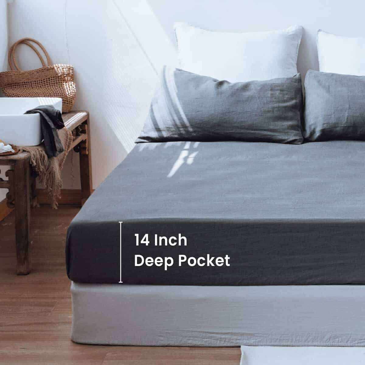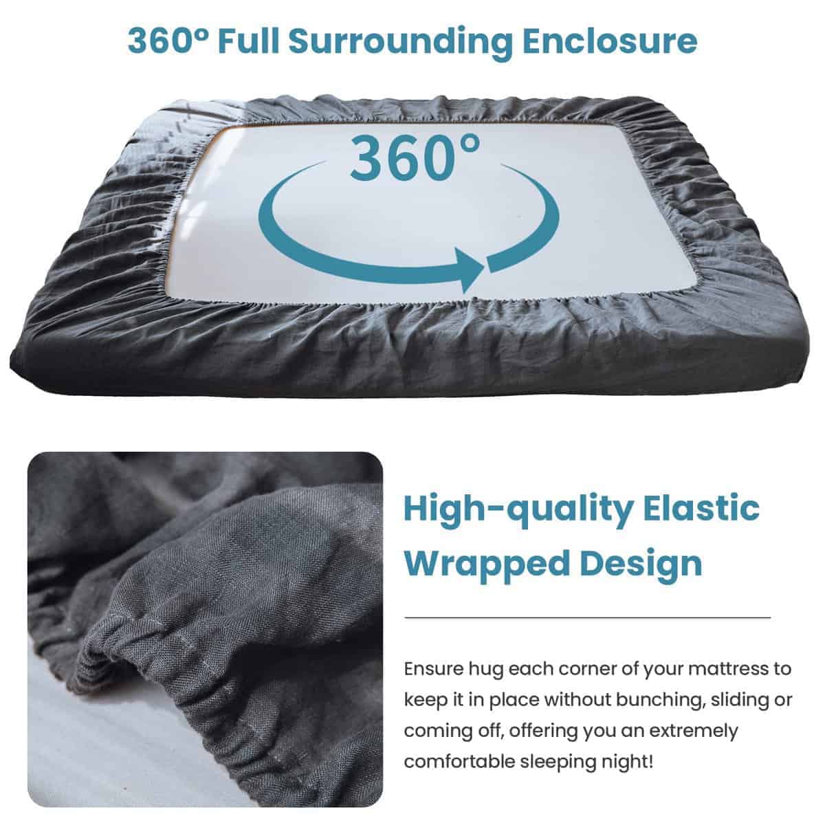 Sábana Ajustable de Lino Lavado a la Piedra – Color Sólido