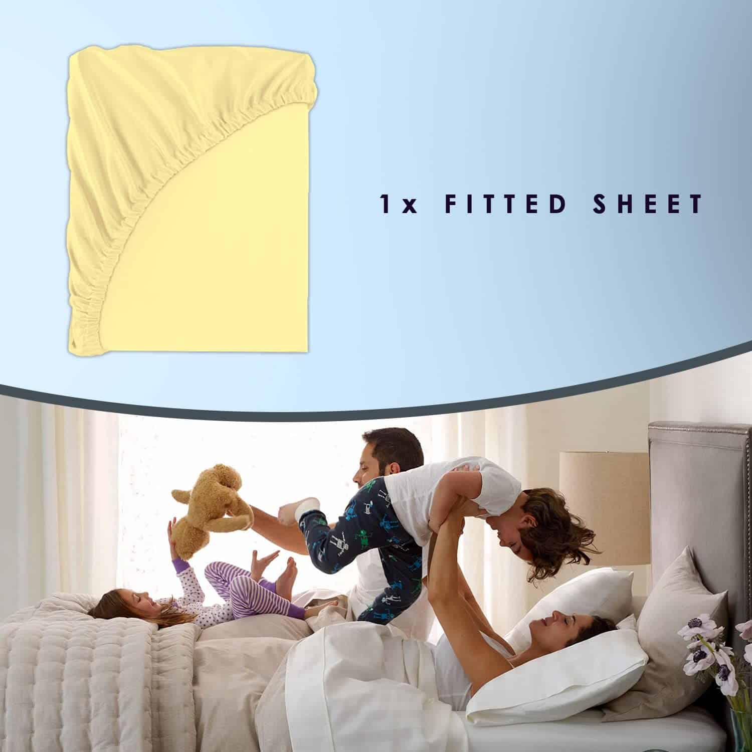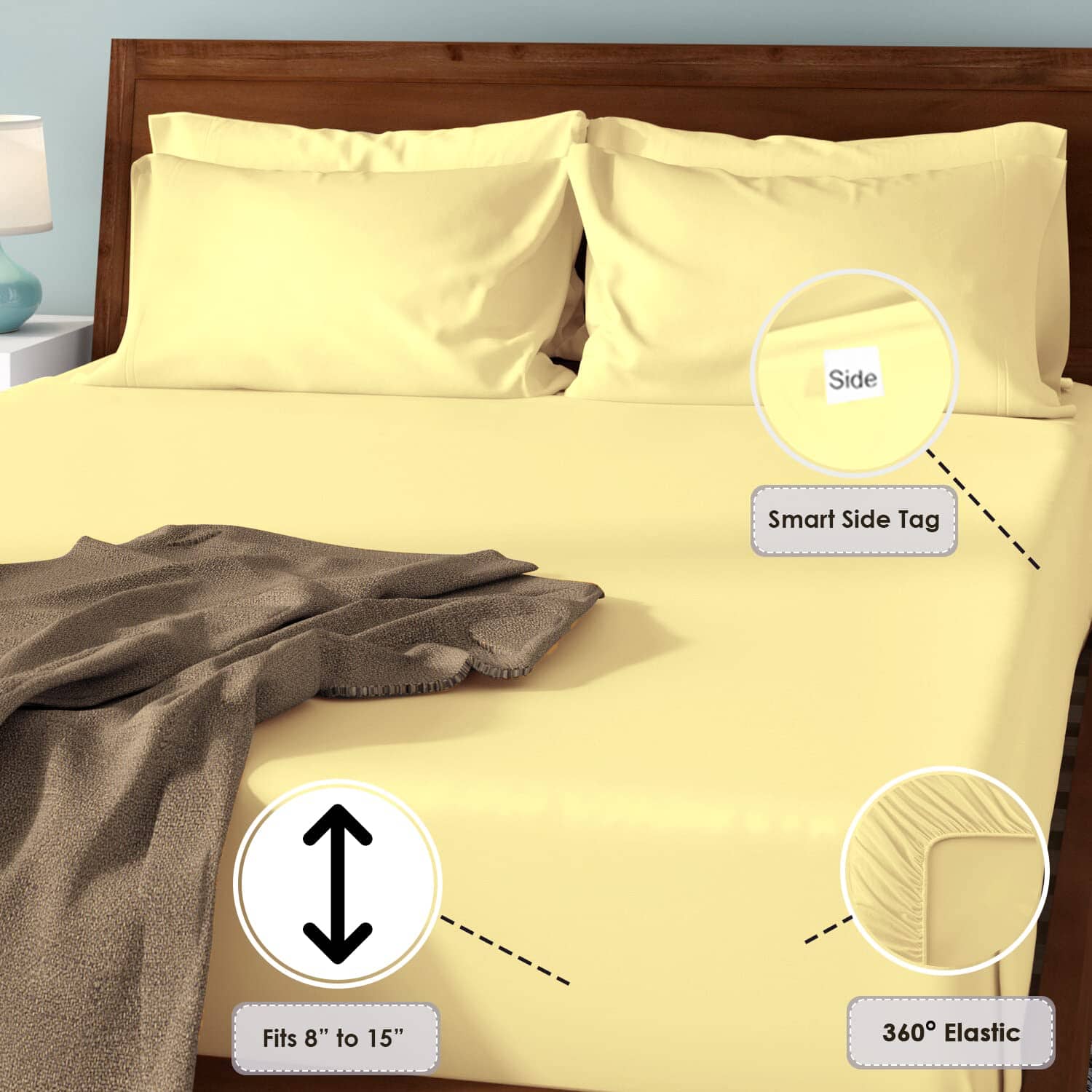 Sábana Ajustable de Lujo Pizuna 100% Algodón -Amarillo Suave