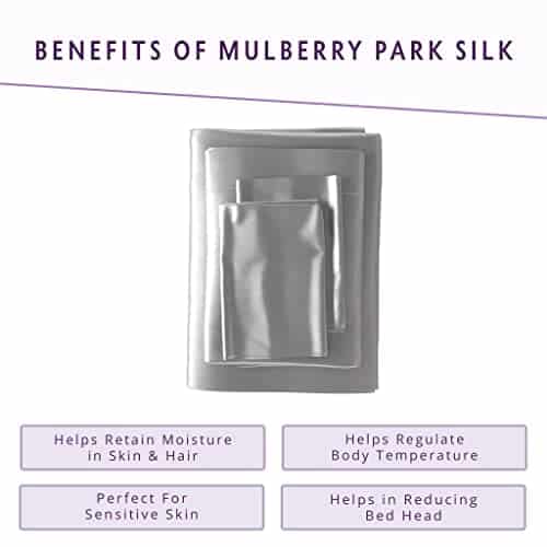 Este juego incluye una sábana ajustable de seda en tamaño Twin X-Long con un bolsillo profundo de 15″ que se adapta fácilmente a colchones de mayor tamaño. La seda utilizada en estas sábanas es OEKO-TEX STANDARD 100 Certified, lo que garantiza que está libre de sustancias nocivas y ha sido teñida sin sombreados ni decoloración de color, manteniendo su apariencia fresca y vibrante con el tiempo. Las sábanas de seda Mulberry Park son adecuadas para todo el año, ya que la seda ayuda a regular la temperatura corporal, manteniéndote fresco en verano y cálido en invierno para un descanso óptimo.