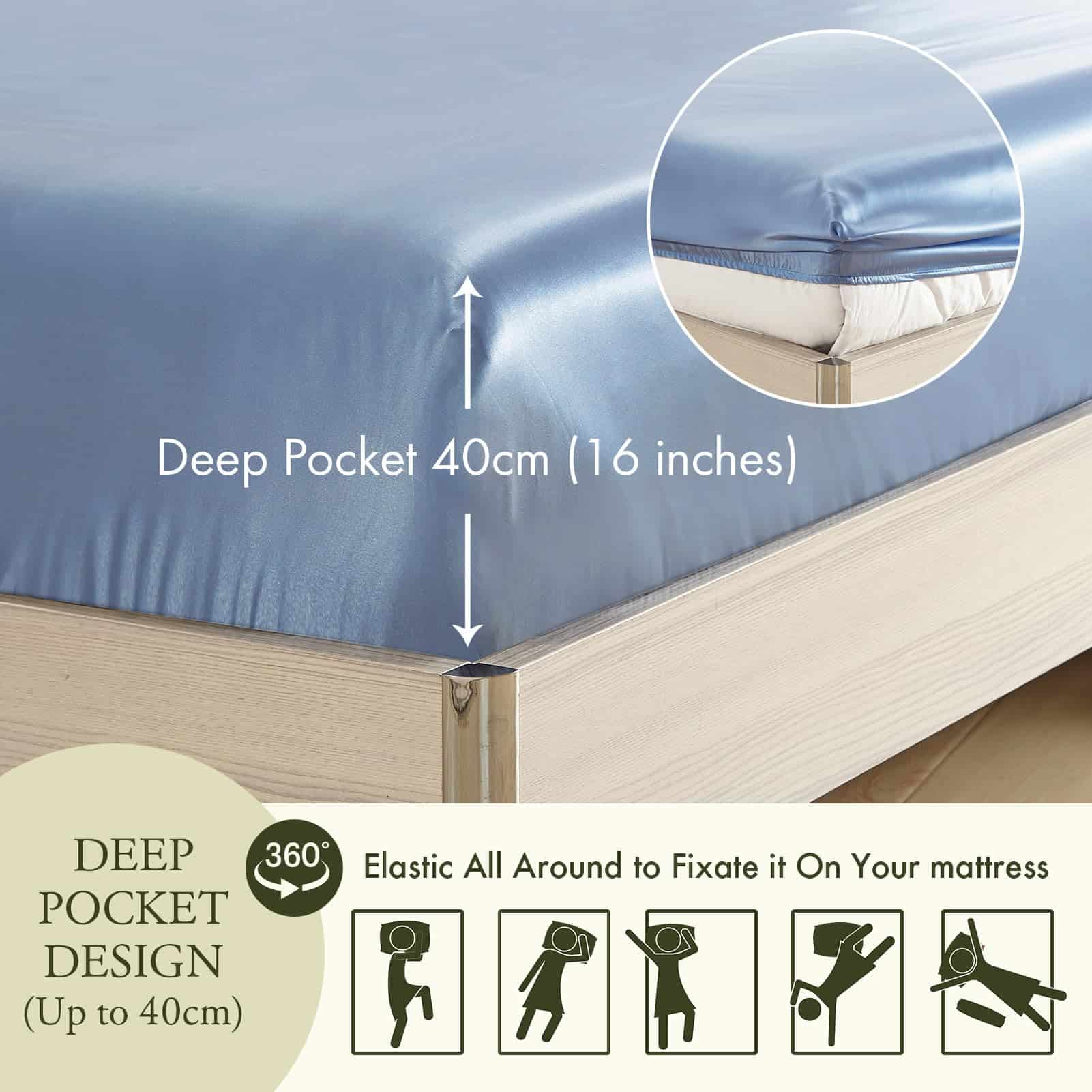 Sábana ajustable de seda de 19 momme sin costuras para dormir y relajarse