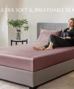 Sábana ajustable hecha de 100% seda (19 momme), que es transpirable y suave. Ha pasado la certificación OEKO Tex Standard 100, que es saludable y respetuosa con el medio ambiente. Cálida en invierno y fresca en verano, con regulación efectiva de la temperatura, adecuada para quienes duermen calientes y fríos. Ligera y transpirable, reduce la presión corporal, absorbe la humedad y el sudor, proporcionándote un sueño de alta calidad. Incluye solo una sábana ajustable de tamaño individual (39″ x 75″), puede adaptarse a colchones desde 8″ hasta 16″. La elasticidad total puede estirarse y adaptarse fácilmente al colchón, sin apreturas ni acumulaciones. Se recomienda lavar a mano o a máquina en agua tibia a 30 °C en un ciclo suave, usar un detergente neutral para evitar que se decolore y evitar la luz solar directa al secar.