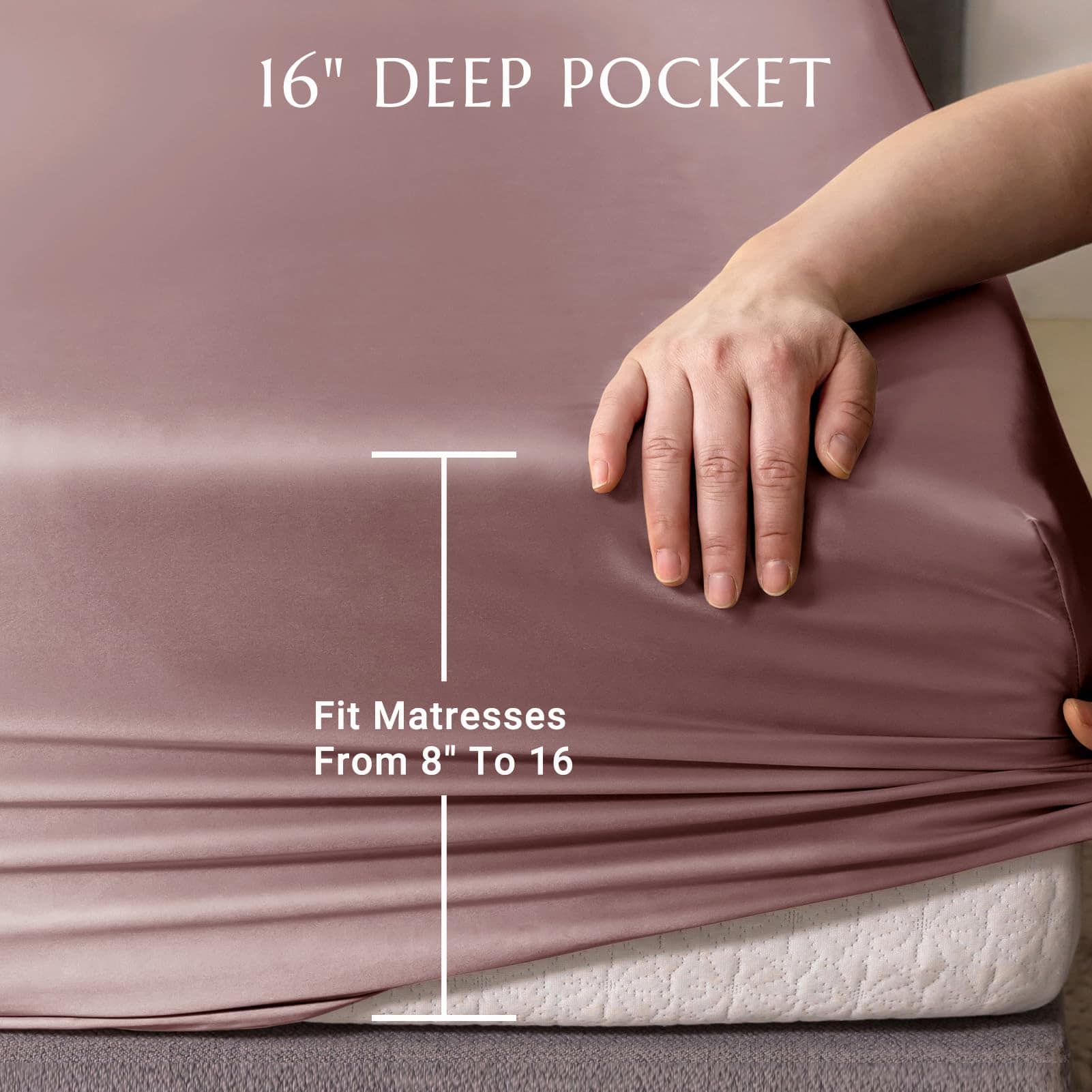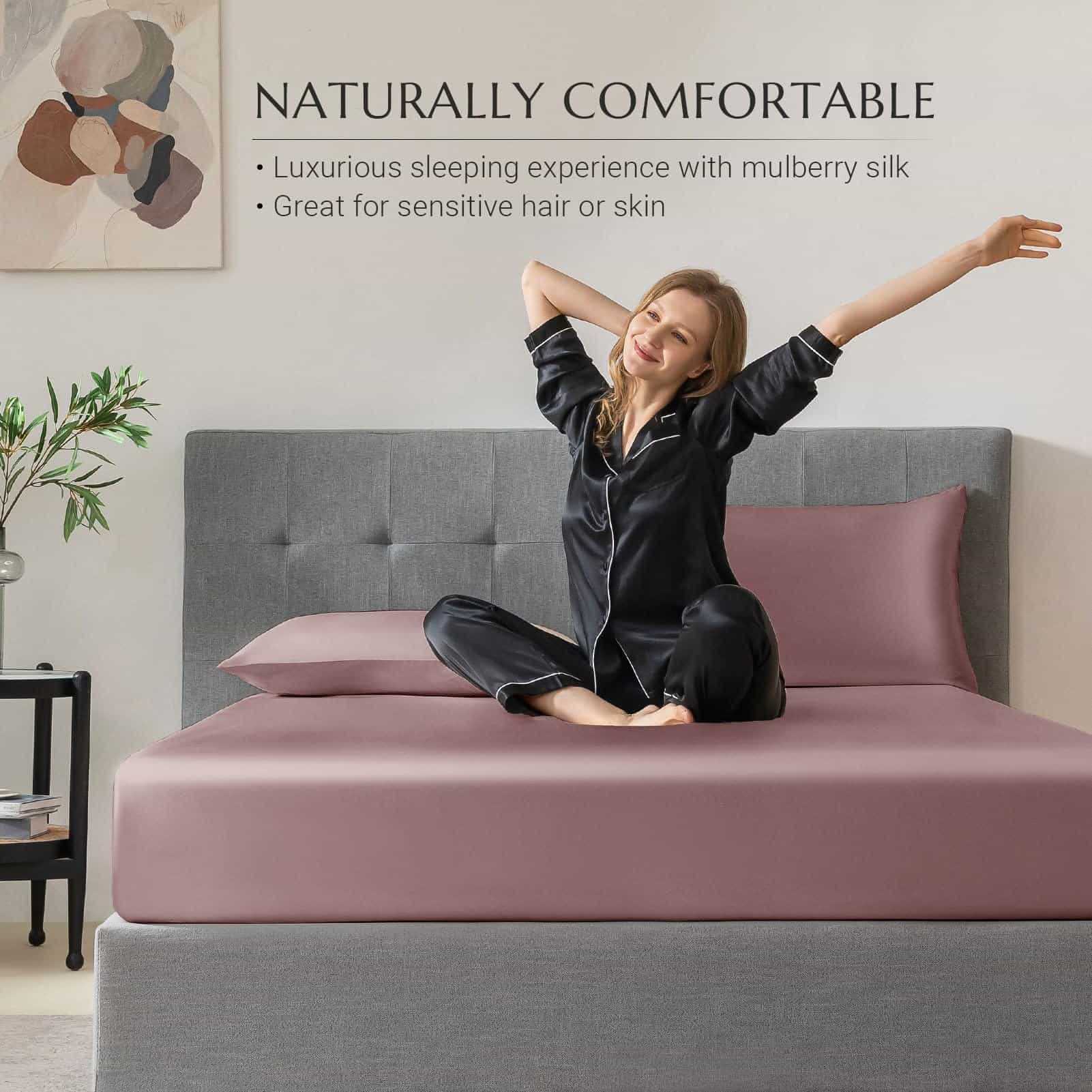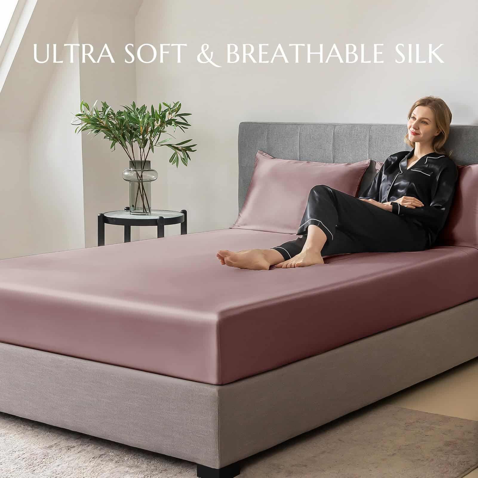 Sábana Ajustable de Seda Natural THXSILK, -Morado