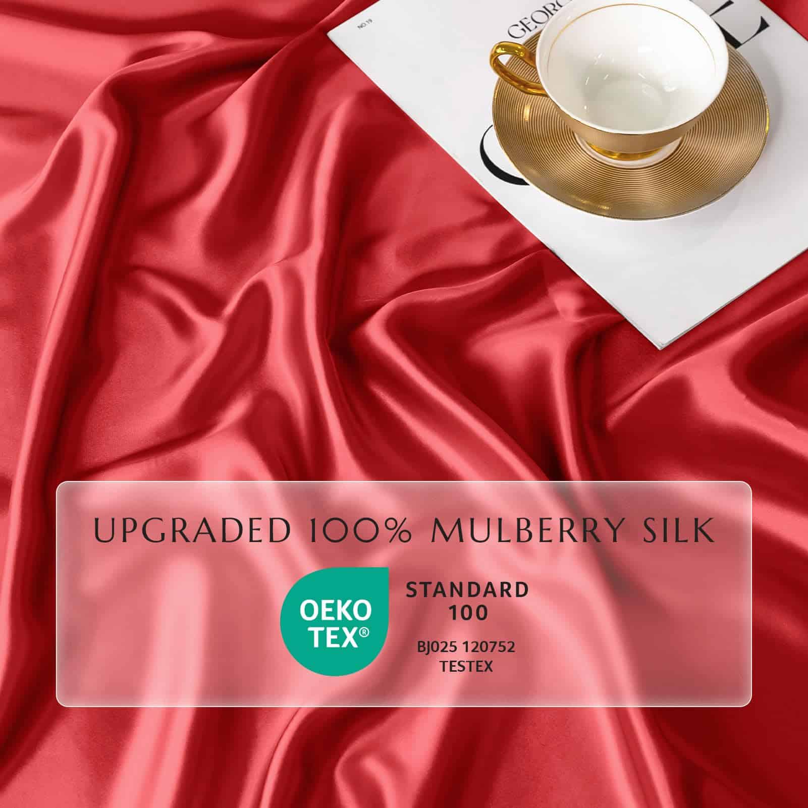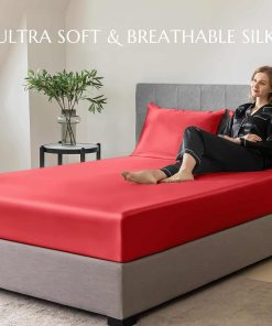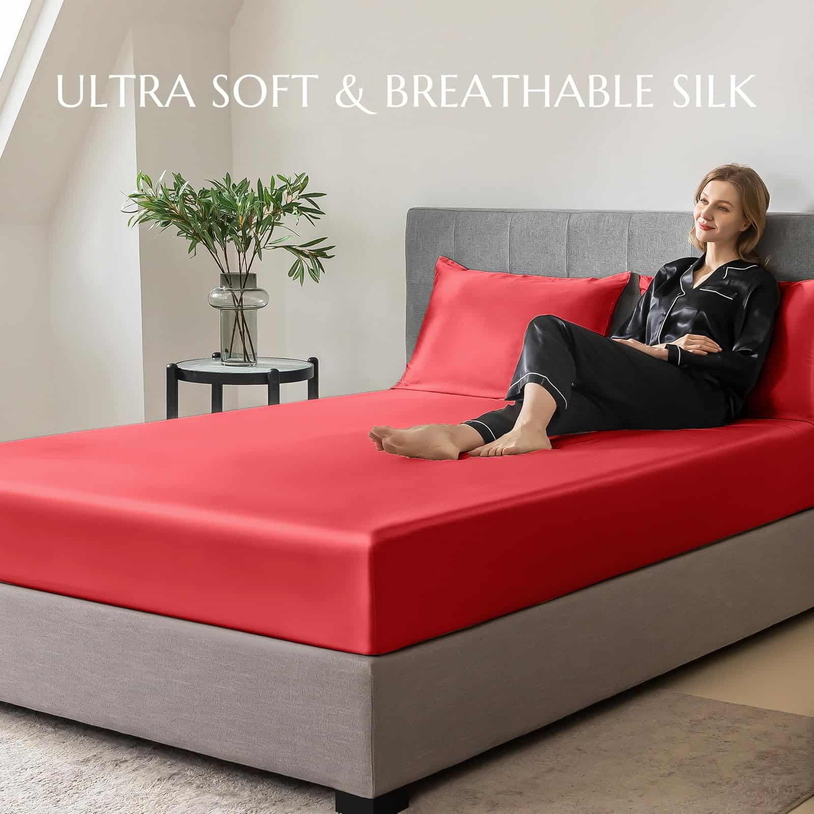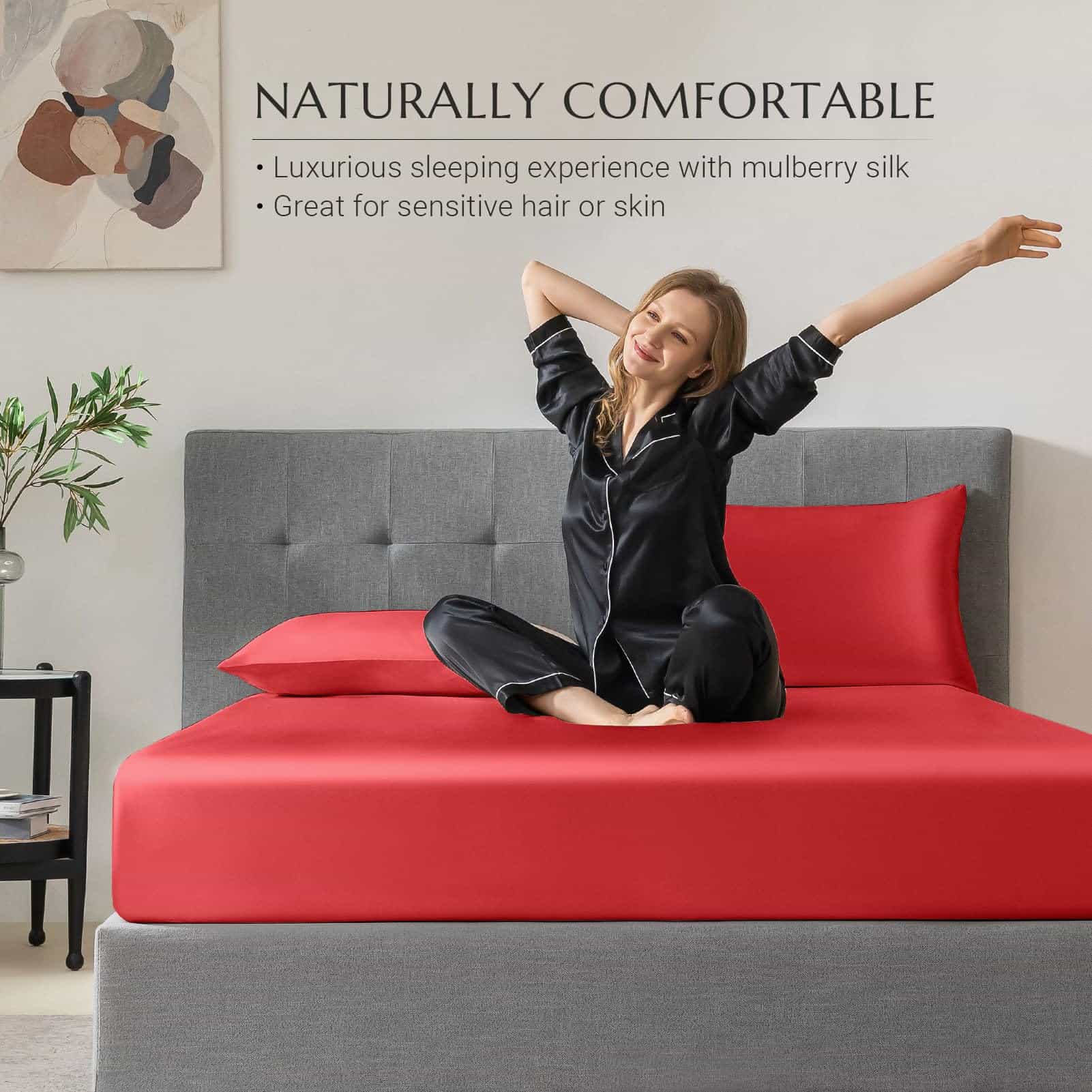 Sábana Ajustable de Seda Natural THXSILK, -Rojo