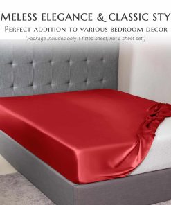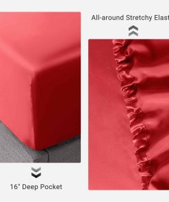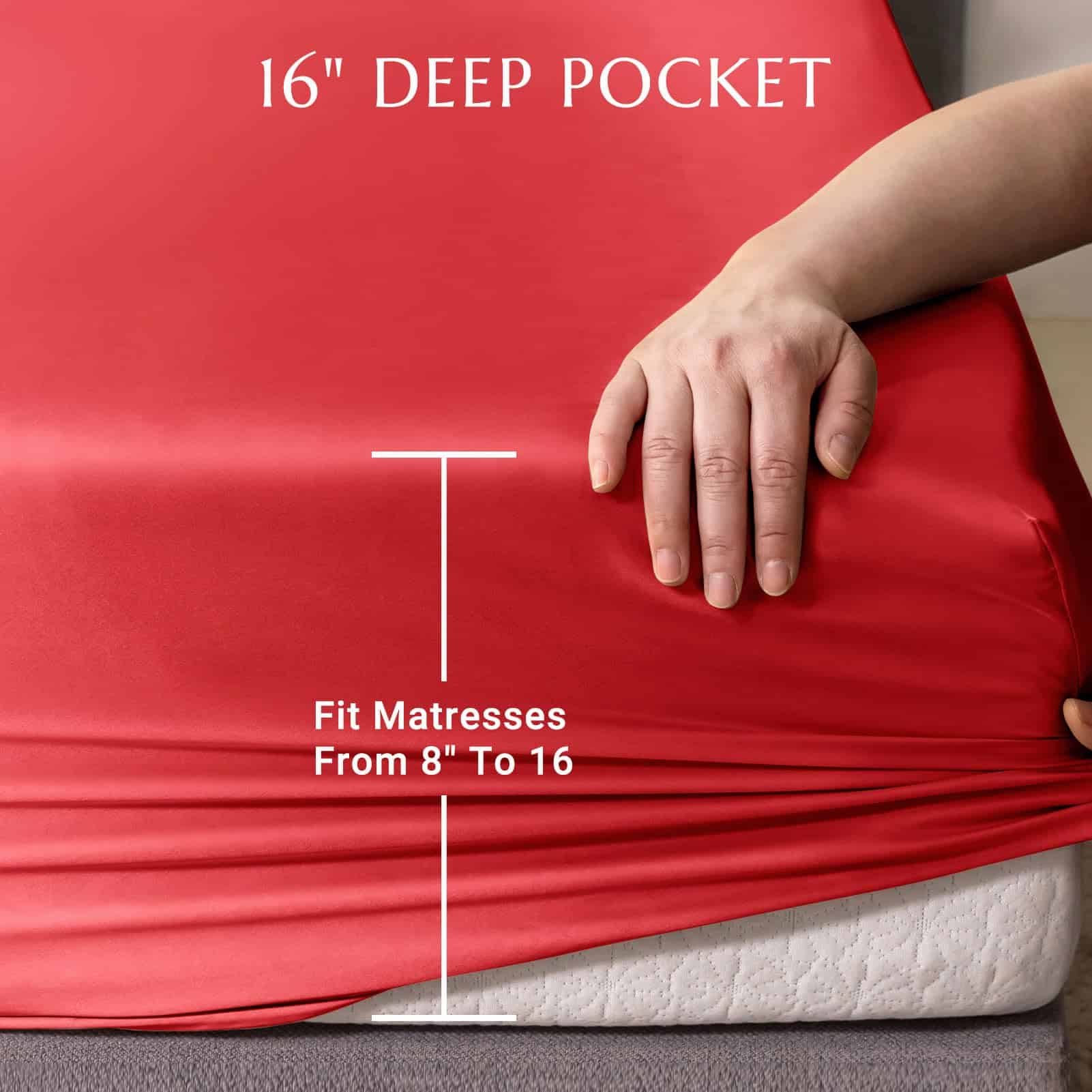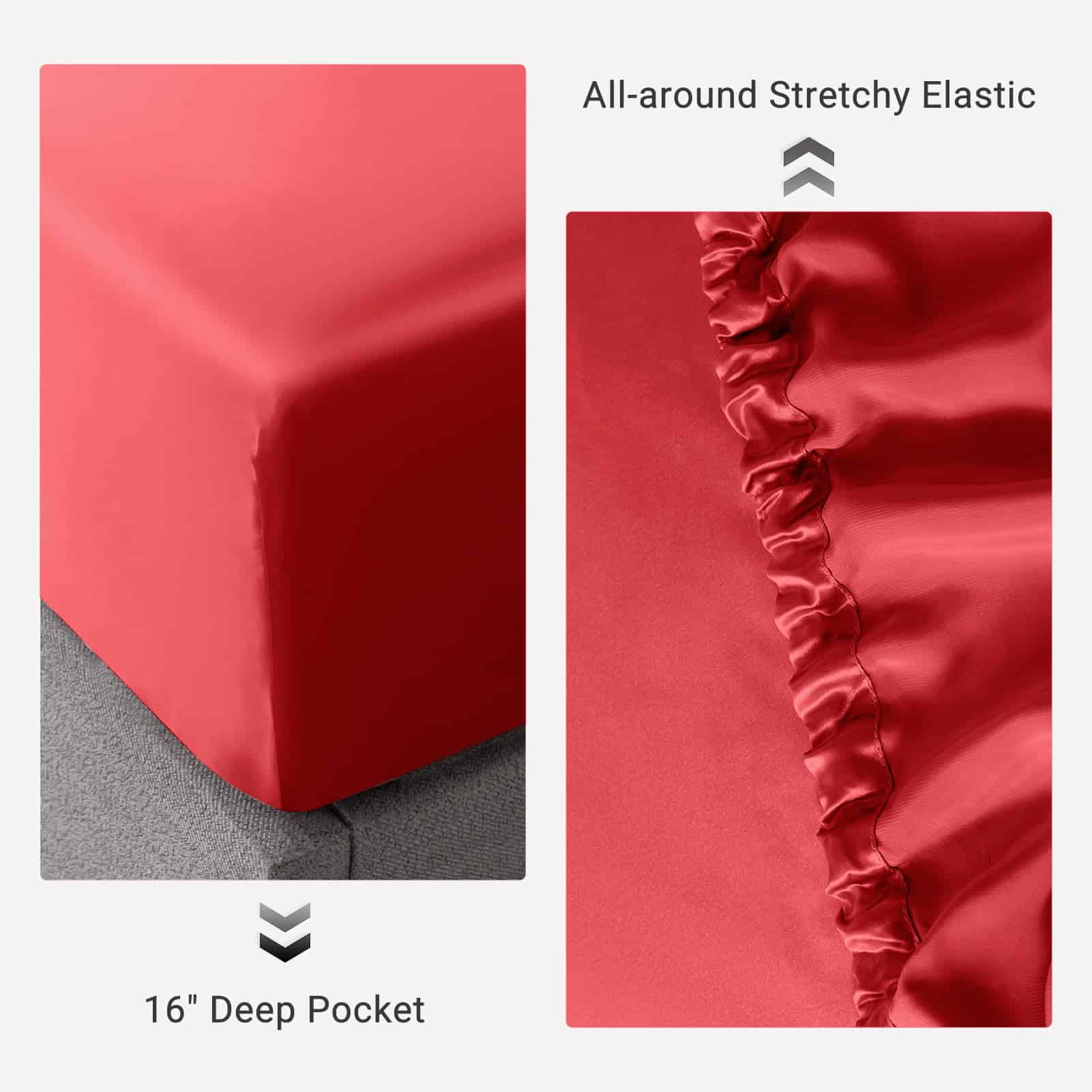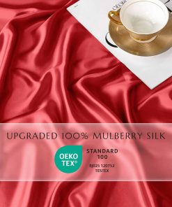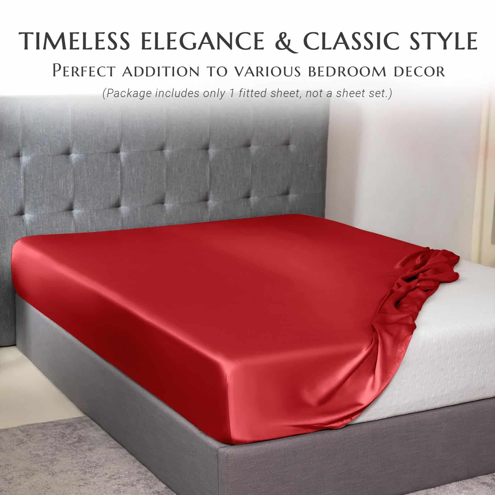Sábana Ajustable de Seda Natural THXSILK, -Rojo