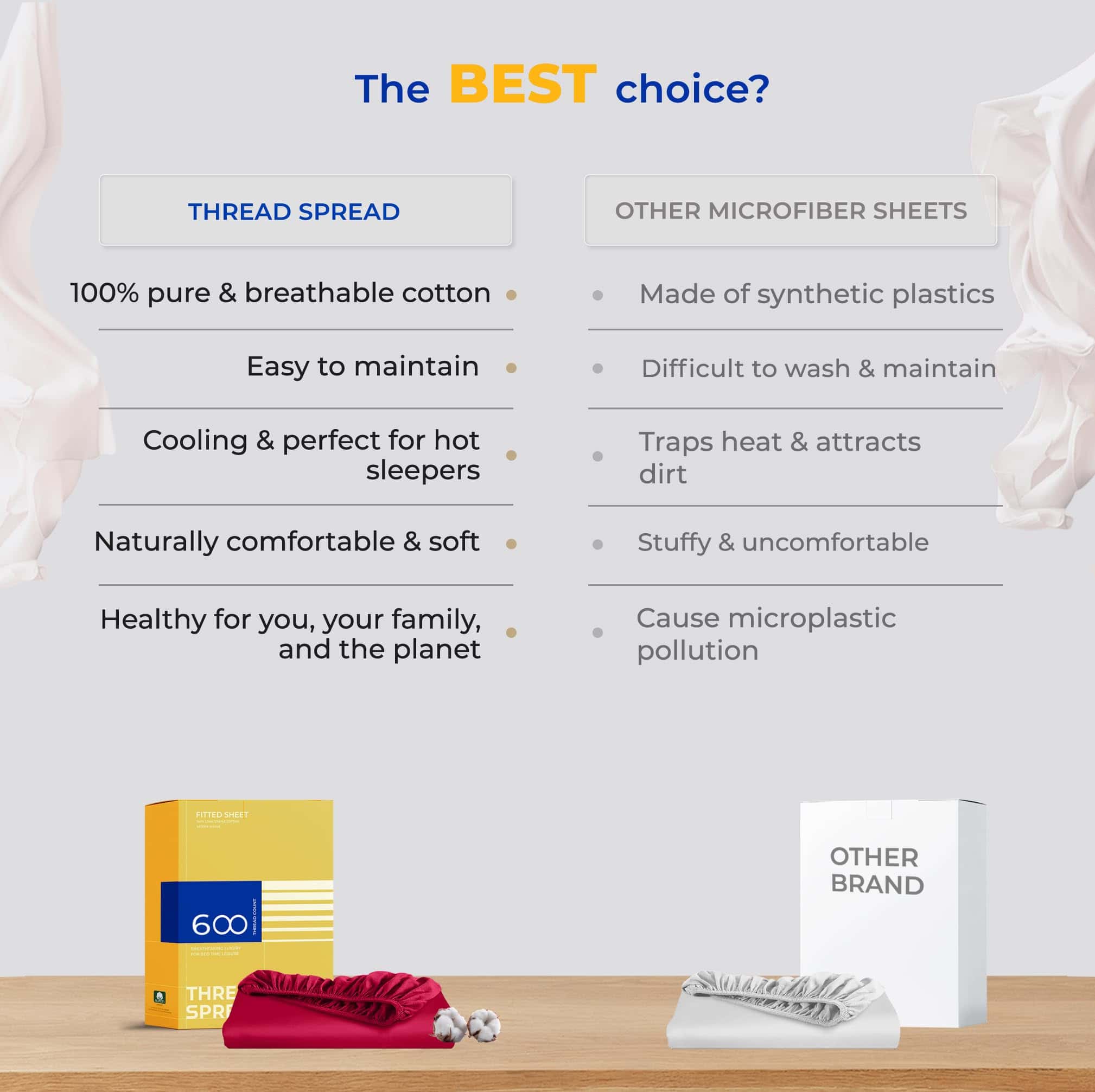 THREAD SPREAD 100% Egyptian Cotton Full Size Fitted Sheet Only – 600 Thread Count 16″ Deep Pocket: la mejor opción para un sueño reparador. Nuestras sábanas ajustables de algodón son de la más alta calidad, con 600 hilos y bolsillos profundos de 16″ para un ajuste perfecto. Fabricadas con algodón mercerizado para un brillo inigualable y colores vibrantes que perduran con el tiempo. La sábana ajustable THREAD SPREAD está diseñada para no soltarse y permanecer en su lugar toda la noche. Disfruta de la suavidad y comodidad de nuestro algodón de fibra larga, más suave que cualquier otra sábana. Mantén la frescura y transpirabilidad mientras duermes en nuestras sábanas de algodón. Cuida de tus sábanas de algodón correctamente para garantizar su durabilidad y longevidad. Con la garantía de satisfacción de THREAD SPREAD, compra con confianza y eleva tu experiencia de cama con nuestras sábanas ajustables de algodón 100%. ¡Haz que tus noches sean aún más especiales con THREAD SPREAD!