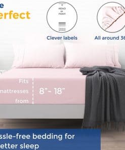 2. La Sábana Ajustable No Se Desprende: Nuestra sábana ajustable de tamaño completo se ajusta perfectamente a cualquier colchón que tengas en casa. Con elástico premium alrededor y bolsillos profundos, nuestra sábana ajustable de tamaño completo abraza el colchón para que no se deslice, se mueva, se agrupe o se despegue por la noche. Incluye 1 sábana ajustable completa de 54″ de ancho x 75″ de largo que se ajusta a colchones bajos de espuma y altas que tienen de 8 a 16″ de profundidad.