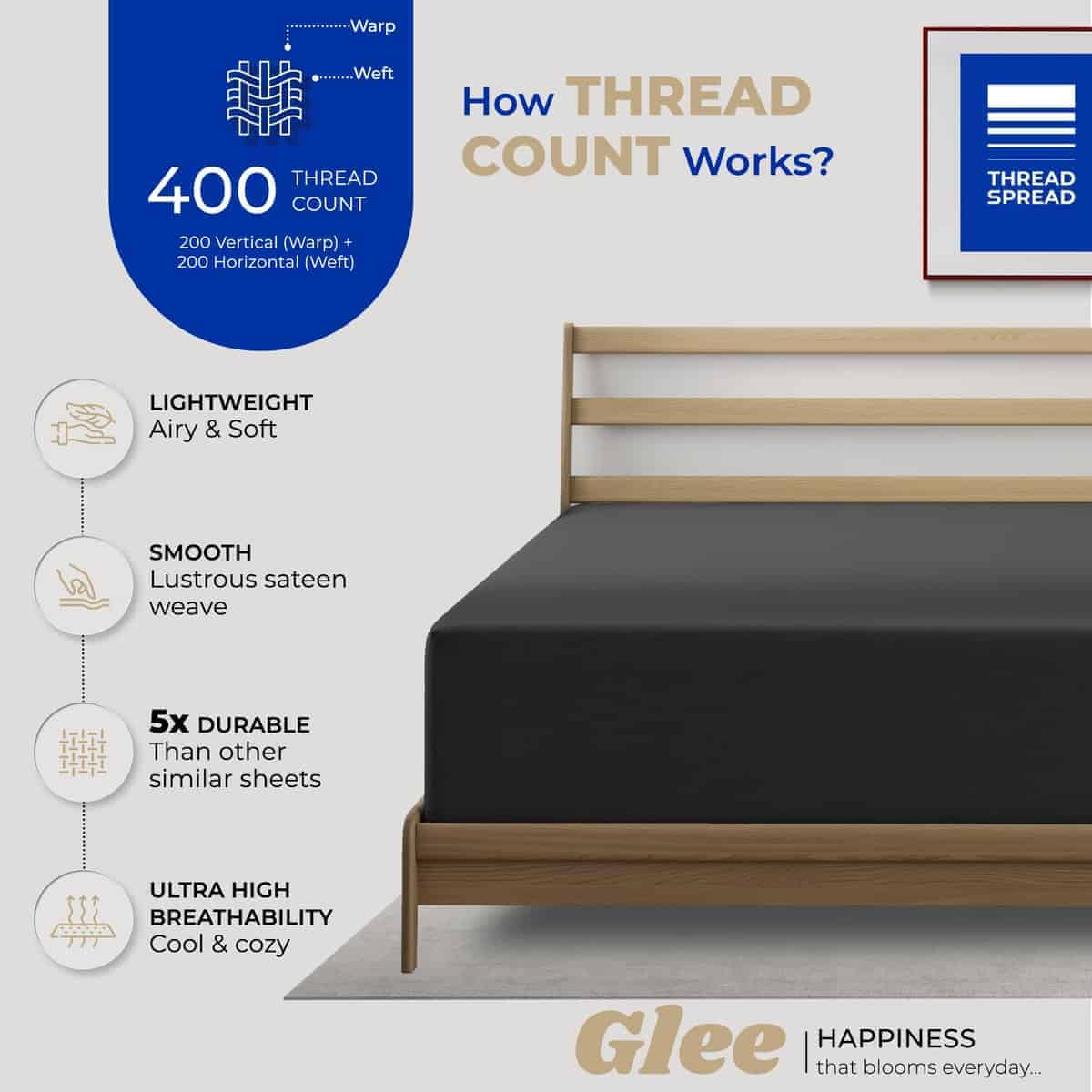 1. ¿Por qué comprar Thread Spread 100% algodón y no microfibra: Nuestras sábanas ajustables de 400 hilos están hechas de algodón mercerizado para un mayor brillo y colores más brillantes y profundos que no se desvanecen y no se desgastan incluso después de varios lavados. Para un sueño saludable, opte por nuestra sábana ajustable de algodón 100% tamaño twin que es natural en su formulación, fresca al tacto y transpirable para crear una experiencia de sueño celestial. La microfibra es barata y se usa principalmente para la limpieza. Atrae el polvo rápidamente y es perjudicial para tu piel.