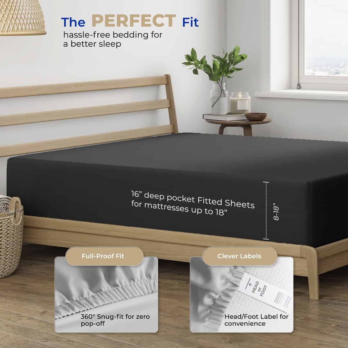 2. La sábana ajustable no se sale: Nuestra sábana queen ajustable se ajusta como un guante a cualquier colchón que tengas en casa. Con elástico premium completo y bolsillos profundos alrededor, nuestra sábana queen tamaño abraza el colchón para que no se deslice, deslice, se amontone o se desprenda por la noche. Incluye solo 1 sábana ajustable tamaño twin de 60″ de ancho x 80″ de largo que se adapta tanto a colchones bajos como altos que tengan un grosor de 8-16″.
