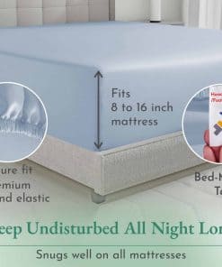 2. Ajuste Personalizado Perfecto – Artesanos expertos adaptan nuestras sábanas de cama con bolsillo profundo (60″ W x 80″ L) para adaptarse a colchones de 8″ a 16″ de profundidad, incluidos los colchones modernos. Cuenta con elástico en todo el contorno e indicador de cabeza/pies para hacer la cama fácilmente y obtener un ajuste ceñido.