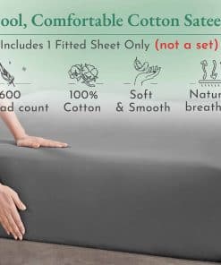 4. Sábana de Lujo Duradera – Nuestra sábana ajustable de tamaño queen de 600 hilos y bolsillo profundo es suave, suave y duradera, fabricada con materiales de alta calidad que no se agrupan, decoloran ni deshacen.