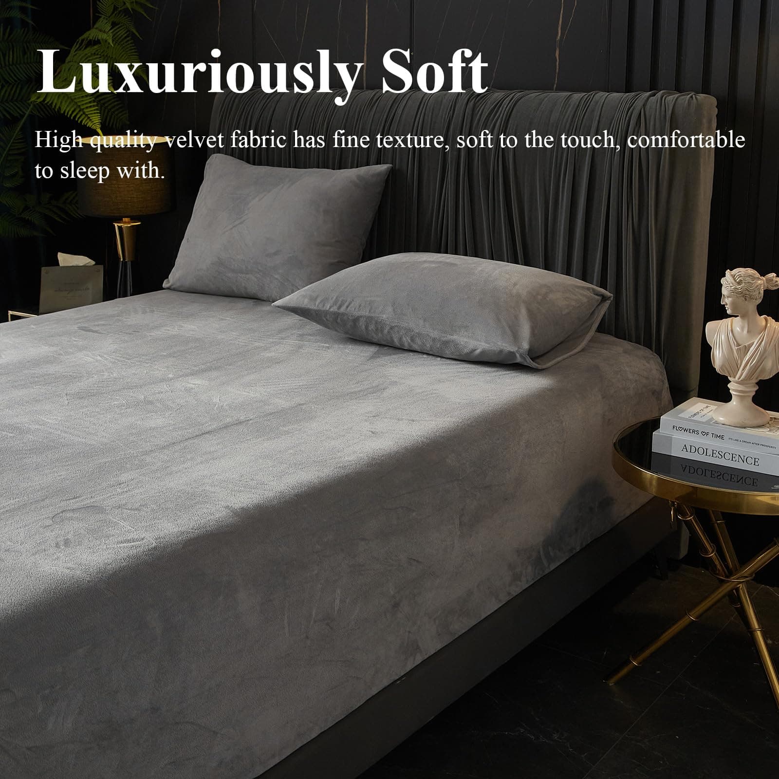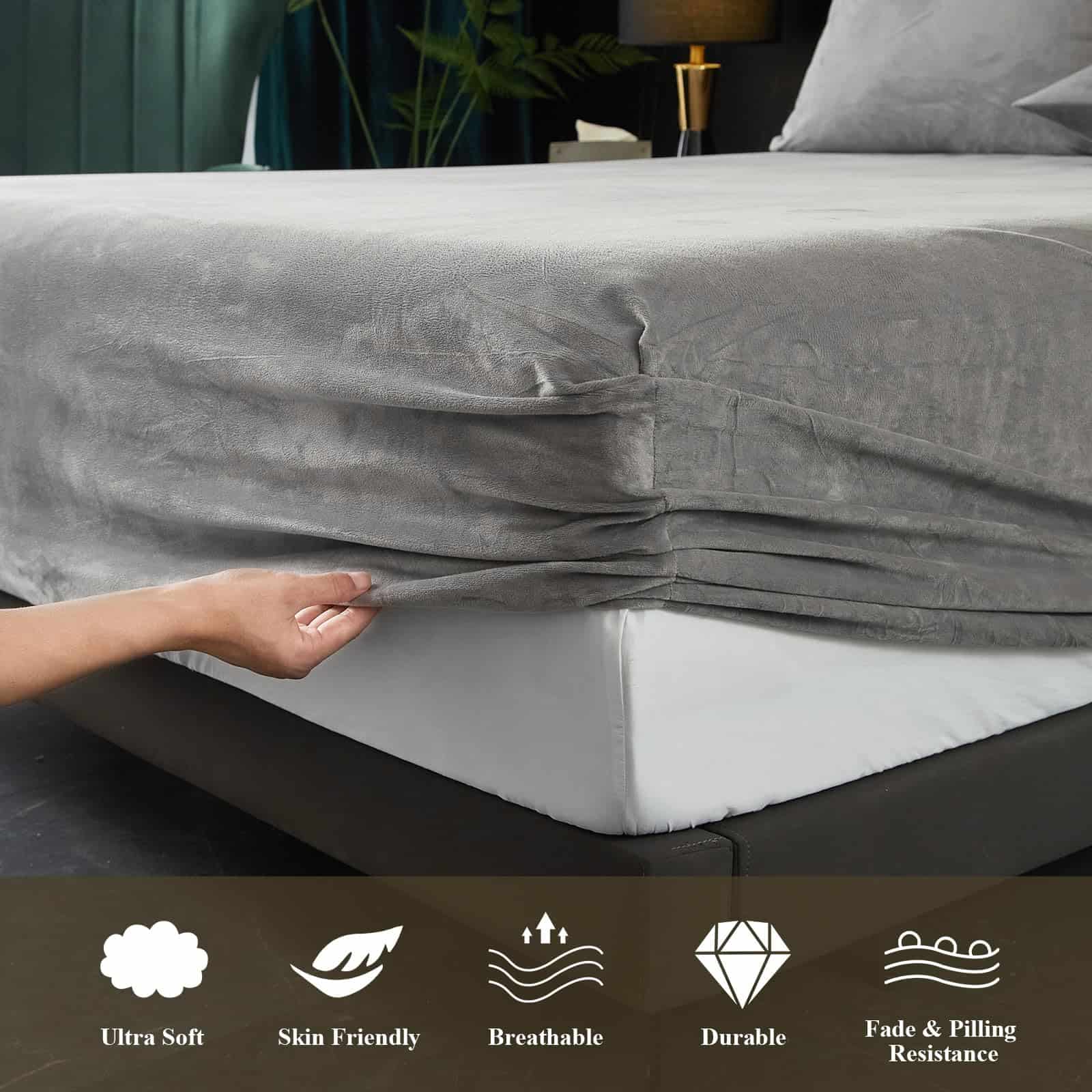 Sábana Ajustable de Terciopelo Ivellow para Cama Queen, 1