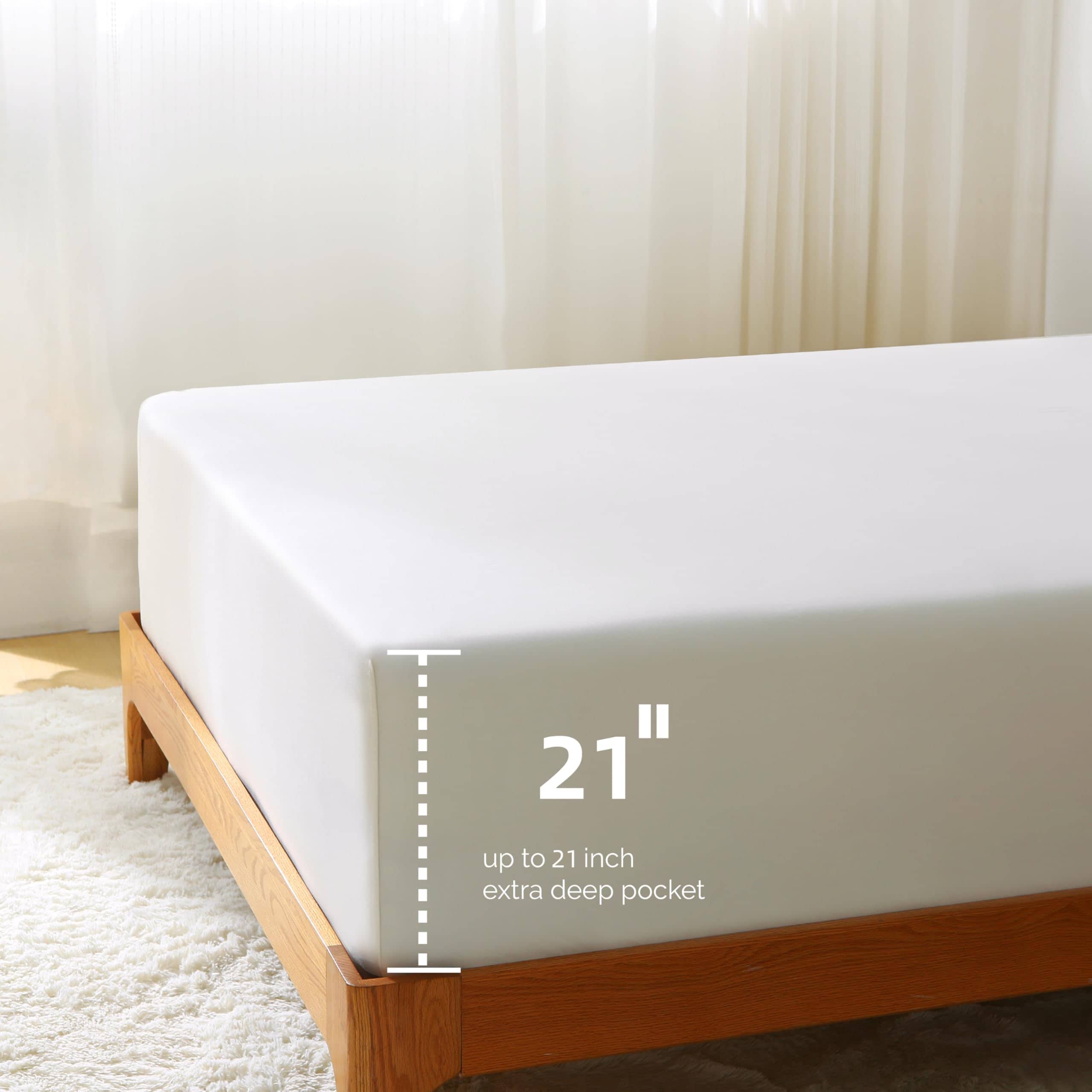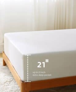 Sábana ajustable con bolsillo extra profundo de 18-21 pulgadas para asegurar un ajuste perfecto incluso en los colchones más gruesos. La sábana ajustable con correas elásticas en las esquinas se mantiene segura en su lugar durante toda la noche, proporcionando confort y estabilidad. Certificado OEKO-TEX: los proveedores de tejidos de Gokotta están certificados según las normas OEKO-TEX 100, garantizando que la tela y el hilo utilizados en nuestros productos se someten a rigurosas pruebas de sustancias dañinas y cumplen estrictos requisitos de seguridad y medioambientales. Lujoso tejido con 300 hilos: eleva tu experiencia de sueño con la sábana ajustable Gokotta, elaborada con un tejido de primera calidad de 300 hilos. Este alto recuento de hilos no solo mejora la suavidad y durabilidad del tejido, sino que también proporciona un tacto supremamente suave para un confort óptimo. Disfruta de la combinación perfecta de transpirabilidad y lujo que te invita a una noche de sueño profundo y reparador.