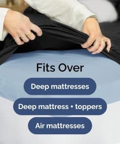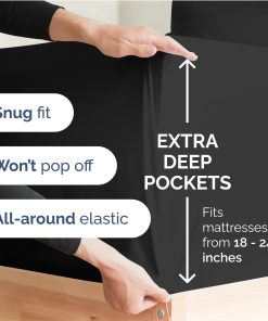 1. OTRAS SÁBANAS NEGRAS SPLIT KING A MENUDO SE SUELTAN DEL COLCHÓN mientras duermes y son difíciles de colocar en tu cama, incluso cuando compras el tamaño correcto. En CGK Unlimited, hemos diseñado nuestras sábanas negras split king con bolsillos extra profundos para adaptarse fácilmente a colchones de 18 a 24 pulgadas de profundidad, por lo que es muy sencillo ponerlas en la cama, incluso con un cubrecolchón! Nuestras sábanas negras split king con bolsillo profundo también cuentan con elástico en todo el borde para abrazar tu colchón de forma segura, ¡nada de sábanas arrugadas!