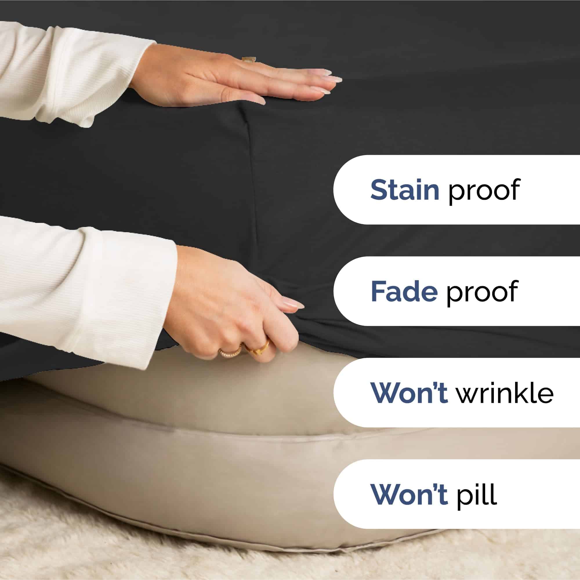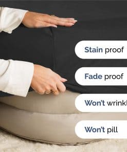 2. A DIFERENCIA DE LAS SÁBANAS NEGRAS SPLIT KING BARATAS QUE SON TAN DELGADAS que se puede ver a través de ellas, nuestra sábana ajustable split king está hecha de tela de doble cepillado de calidad premium que está diseñada para durar. Nuestras sábanas negras split king ajustables de bolsillo profundo son especialmente tratadas para resistir rasgaduras, encogimiento, arrugas, manchas y decoloración, para que puedas lavarlas sin preocupaciones.