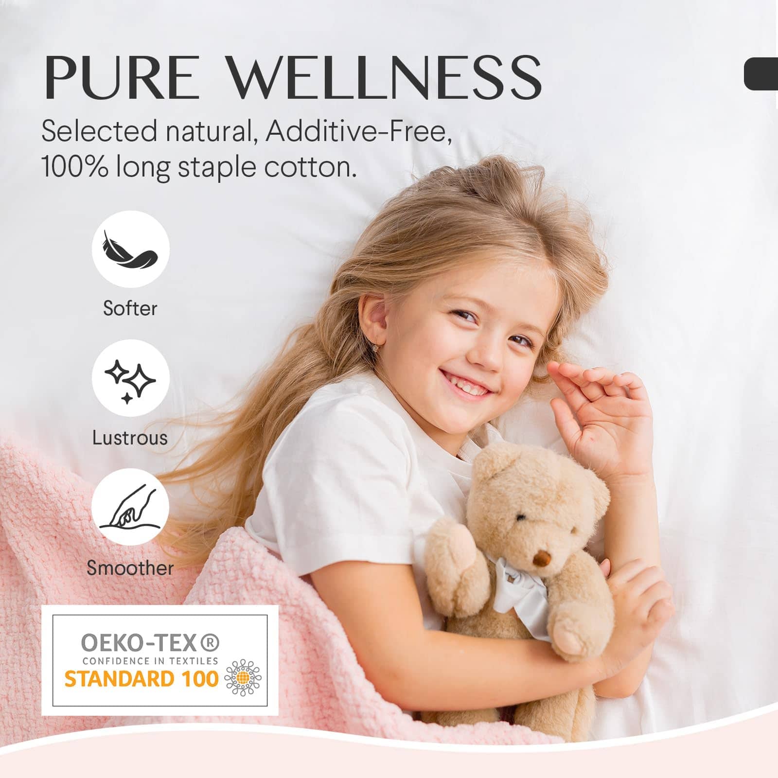Las sábanas blancas de algodón 100% king de FAUNNA (80X78 pulgadas) están diseñadas para una suavidad lujosa que aumenta con cada lavado. Transpirables y reguladores de la temperatura, son perfectas para personas que duermen calientes, bebés, piel especial, etc. Nuestras sábanas ajustables king ofrecen un abrazo similar a una nube para una comodidad definitiva noche tras noche. Otras sábanas ovaladas king profundas a menudo se deslizan de tu colchón y somier durante el sueño, incluso si son del tamaño adecuado. En FAUNNA, nuestras sábanas ajustables blancas king de algodón al 100% cuentan con sábanas inferiores de bolsillo profundo diseñadas para adaptarse a colchones de hasta 17 pulgadas de grosor sin esfuerzo. Los bordes elásticos alrededor garantizan un ajuste firme, para que nunca vuelvas a despertarte con sábanas arrugadas. Nuestras sábanas ajustables king tamaño king no solo están diseñadas para un sueño reparador, también están diseñadas pensando en tu salud. Certificadas por OEKO-TEX, nuestras sábanas están libres de productos químicos agresivos y olores fuertes, asegurando una elección segura y sostenible para tu dormitorio. La tela de algodón 100%, combinada con tintes ecológicos, ofrece lujo y tranquilidad. En FAUNNA, creemos que todo el mundo merece el lujo de la ropa de cama premium. Nuestras sábanas ajustables certificadas OEKO-TEX de 800 hilos se combinan con una comodidad ultra suave, calidad duradera y diseño elegante para elevar tu experiencia de sueño. Respaldadas por una garantía de 1 año, nuestra ropa de cama de algodón king combina funcionalidad con elegancia.
