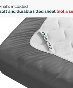 REDEFINE TU SUEÑO – Experimenta la comodidad y frescura con nuestra sábana ajustable. Súper suave, sedosa y transpirable, apoya un sueño tranquilo como ningún otro. ¡MANTENTE EN SU LUGAR – La suave sábana ajustable está diseñada con 4 correas elásticas de esquina y una correa elástica de 360 grados que se mantendrá perfectamente en su lugar. Las 4 bandas elásticas de Gokotta están hechas con una combinación de poliéster y spandex. ACTUALIZA TU ESTILO DE VIDA – Sábana ajustable hecha con precisión, presume de un alto conteo de hilos de 300 y propiedades excepcionales de absorción de humedad. Perfecto para personas conscientes de la salud y que duermen calientes.