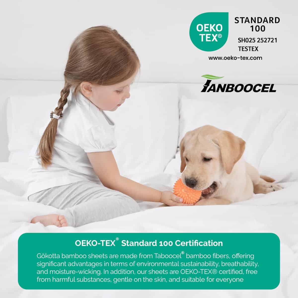 Las sábanas ajustables GOKOTTA están confeccionadas con 100% bambú rayón de alta calidad con 300 hilos, que es más suave que la seda y proporciona una sensación lujosa al tacto. Este tejido natural es hipoalergénico, lo que lo hace ideal para personas con piel sensible o alergias. Además, el bambú rayón es conocido por ser un material fresco y transpirable, perfecto para mantener una temperatura óptima durante la noche. La sábana ajustable se adapta perfectamente a colchones de hasta 15 pulgadas de grosor, gracias a su banda elástica y correas en las esquinas que aseguran un ajuste firme sin deslizamientos. El tejido absorbente de humedad te mantiene seco y fresco, evitando la acumulación de sudor y malos olores. Además, nuestras sábanas han sido certificadas por OEKO-TEX e ISO 9001, lo que garantiza que son seguras para toda la familia, incluidos niños y mascotas. Con nuestra garantía de satisfacción de 90 días, puedes probar las sábanas ajustables de bambú rayón de Gokotta sin riesgos. Disfruta de un sueño más saludable y cómodo con GOKOTTA.